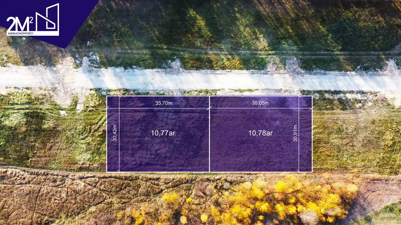 Działka 1357/47 ma powierzchnię 10,78 arów, natomiast działka 1357/48 posiada 10,77 arów. Dojazd bezpośrednio z drogi publicznej powiatowej przez drogę wewnętrzną gminną utwardzoną.