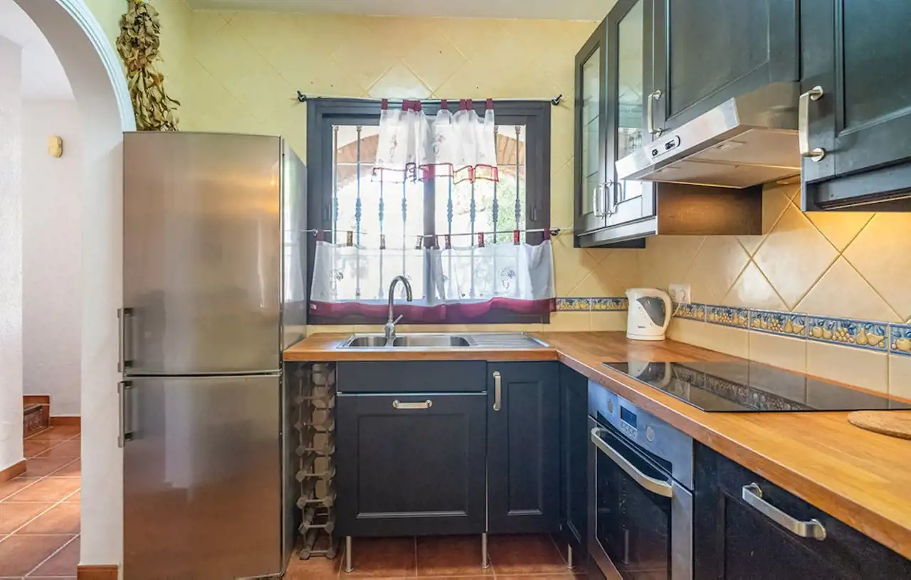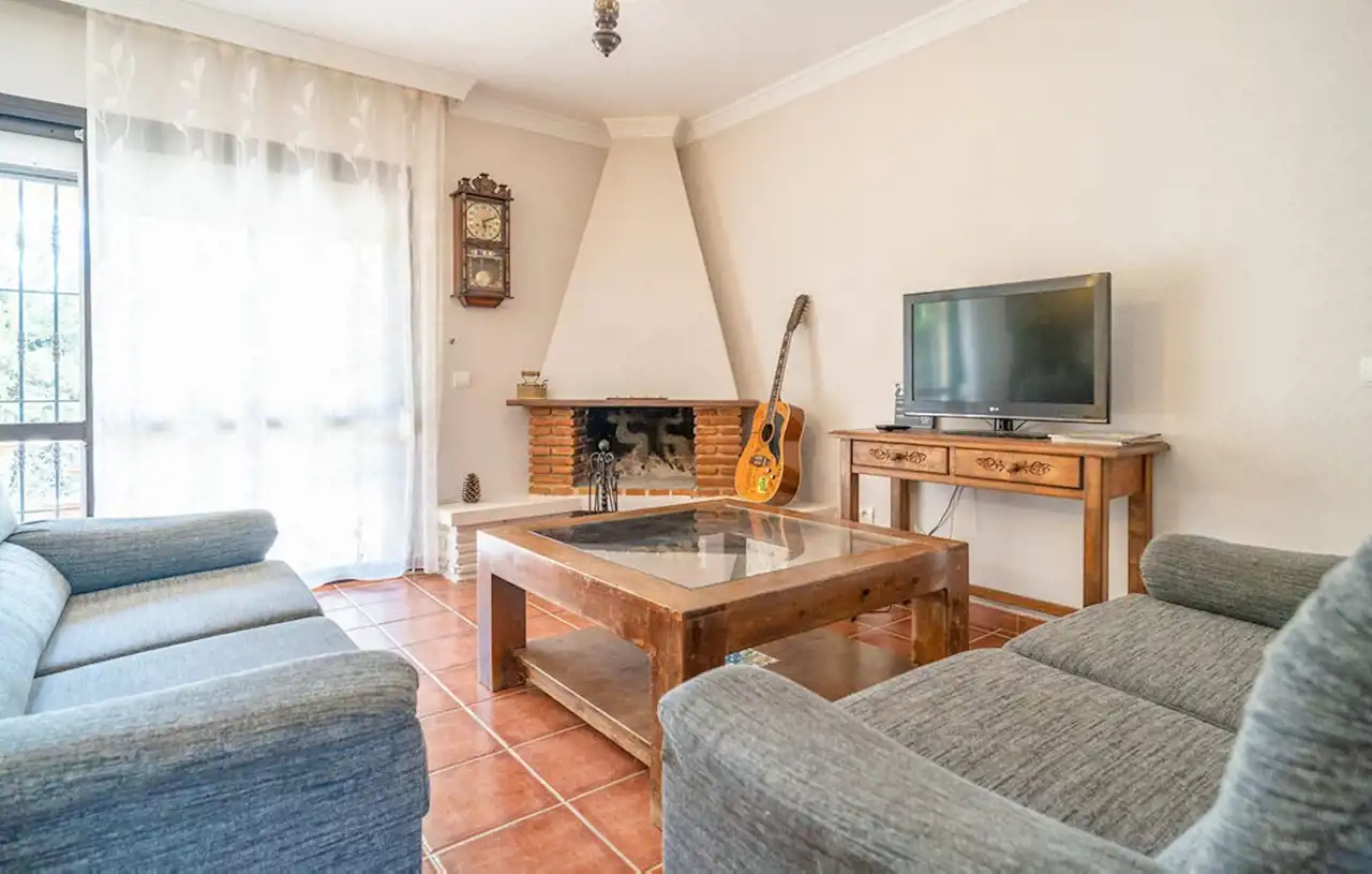 Nieruchomość ma duży salon, kuchnia, trzy sypialnie i trzy łazienki, taras wokół budynku, własny ogród, a także dostęp do wspólnego ogrodu, ze wspólnym basenem.