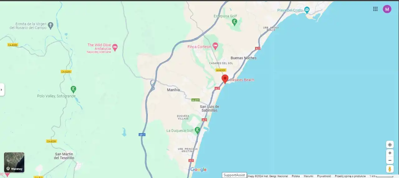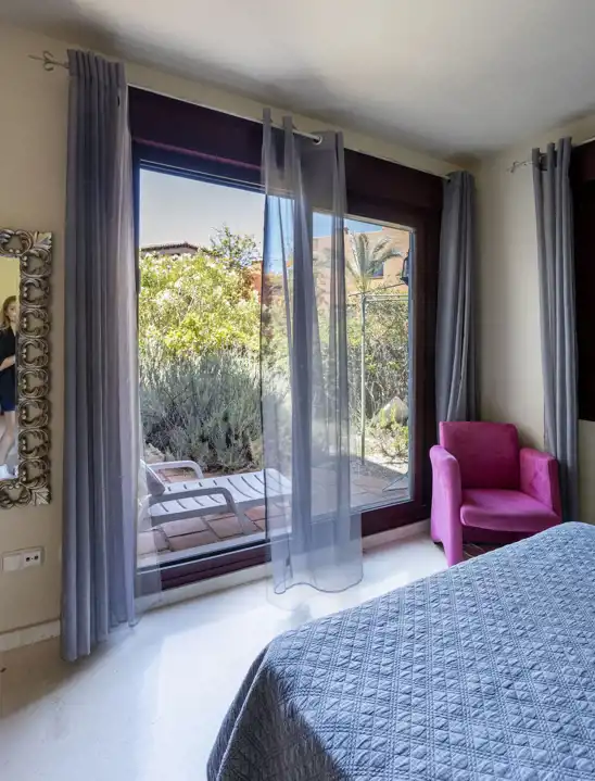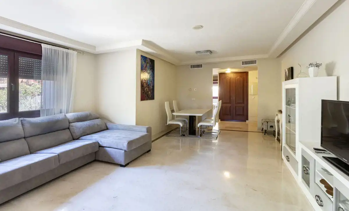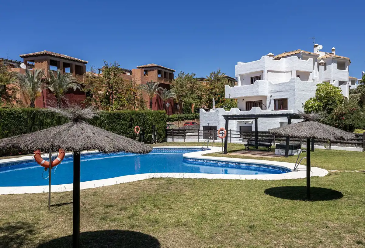 Przestronny i słoneczny apartament o powierzchni 117 m² , w miejscowości Casares Playa, Málaga, Costa del Sol, Hiszpania., położony na pięknym, cichym osiedlu Casares Golf Club, z terenami zielonymi i basenem komunalnym dla mieszkańców.