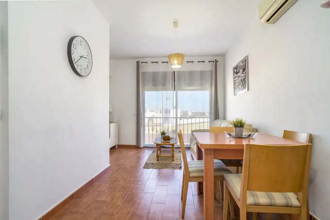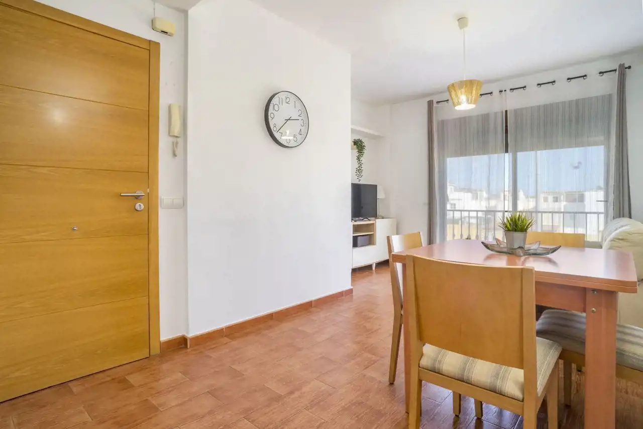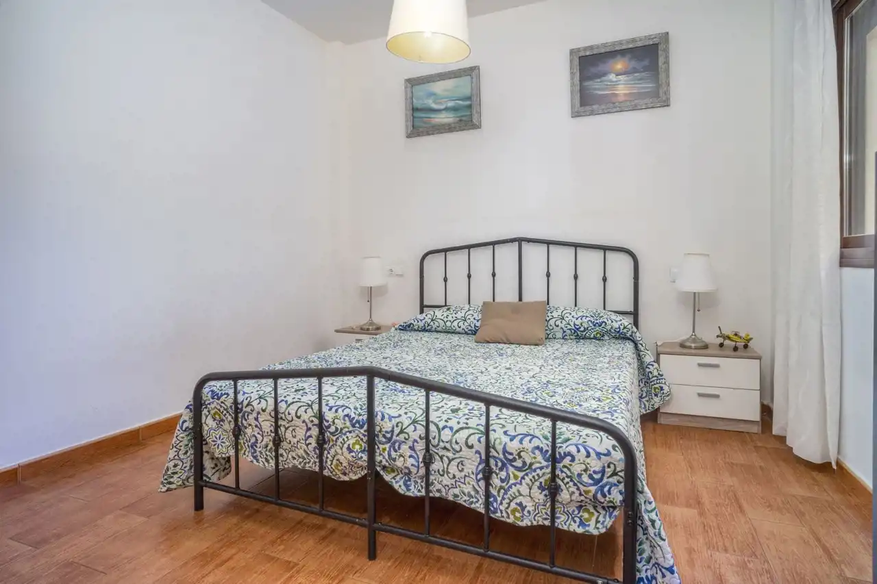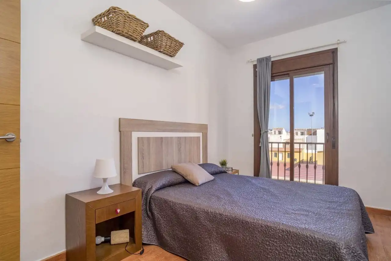 Dużym atutem nieruchomości są dwa balkony z markizami, które zapewniają naturalne światło, świeże powietrze oraz przyjemną przestrzeń do wypoczynku na zewnątrz przez cały rok. Południowa ekspozycja gwarantuje słońce przez większość dnia, co czyni apartament jasnym i ciepłym. Dodatkowo mieszkanie wyposażone jest w klimatyzację, elektryczne rolety w salonie, windę w budynku oraz dostęp do prądu i wody pitnej. Opłaty wspólnotowe wynoszą jedynie 60 euro miesięcznie, co czyni utrzymanie nieruchomości bardzo ekonomicznym.