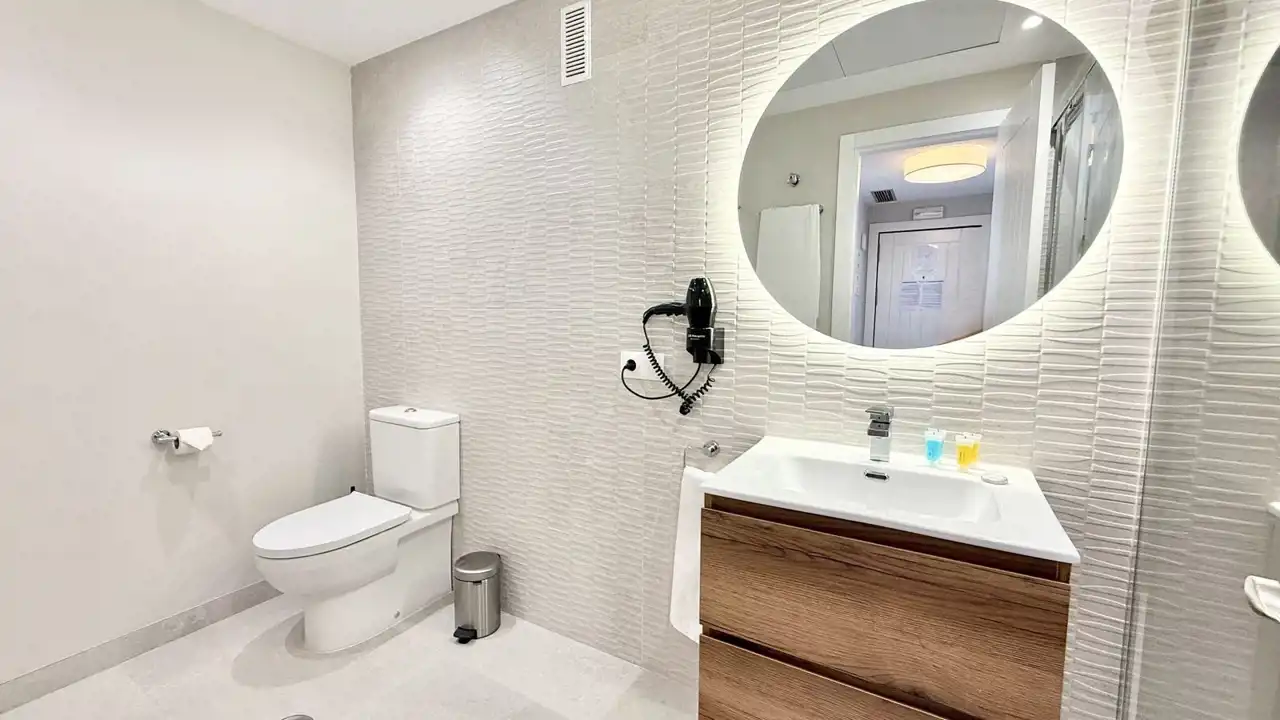 Mieszkanie oferuje przestronną sypialnię, łazienkę, komfortową strefę dzienną oraz taras prywatny i zadaszony z panoramicznym widokiem. W pełni wyposażona kuchnia zapewnia funkcjonalność i wygodę codziennego użytkowania. Apartament jest wyposażony w wbudowane szafy, elektryczne rolety okienne, klimatyzację ciepło-zimno oraz podłogi drewniane i podwójne szyby, co gwarantuje komfort przez cały rok.
