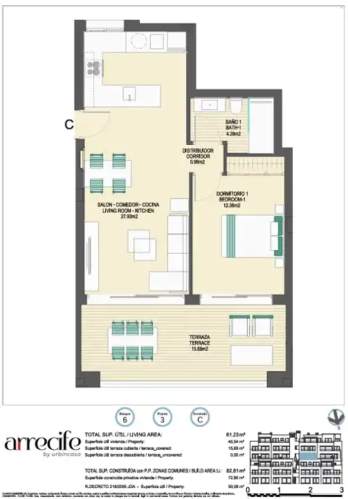 - Charakterystyka mieszkania 61.23 m2, 2 pokoje