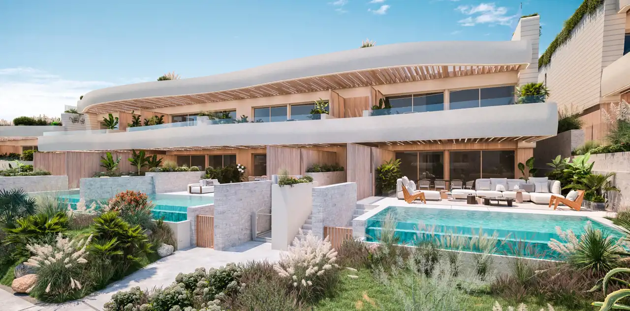 Podobnie jak sam kompleks, rezydencje zostały skrupulatnie zaprojektowane, aby zapewnić wyjątkowe wrażenia mieszkalne, dlatego oferują wyjątkową gamę materiałów, w tym najwyższej jakości płytki porcelanowe, przestronne kuchnie z najwyższej klasy urządzeniami, prywatny basen w każdym lokalu, pokojowa klimatyzacja ciepło/zimno, kompletna automatyka domowa, rolety elektryczne, ogrzewanie podłogowe w całym domu, zamykany garaż na co najmniej dwa samochody, preinstalacja do ładowania pojazdów elektrycznych i nie tylko...
