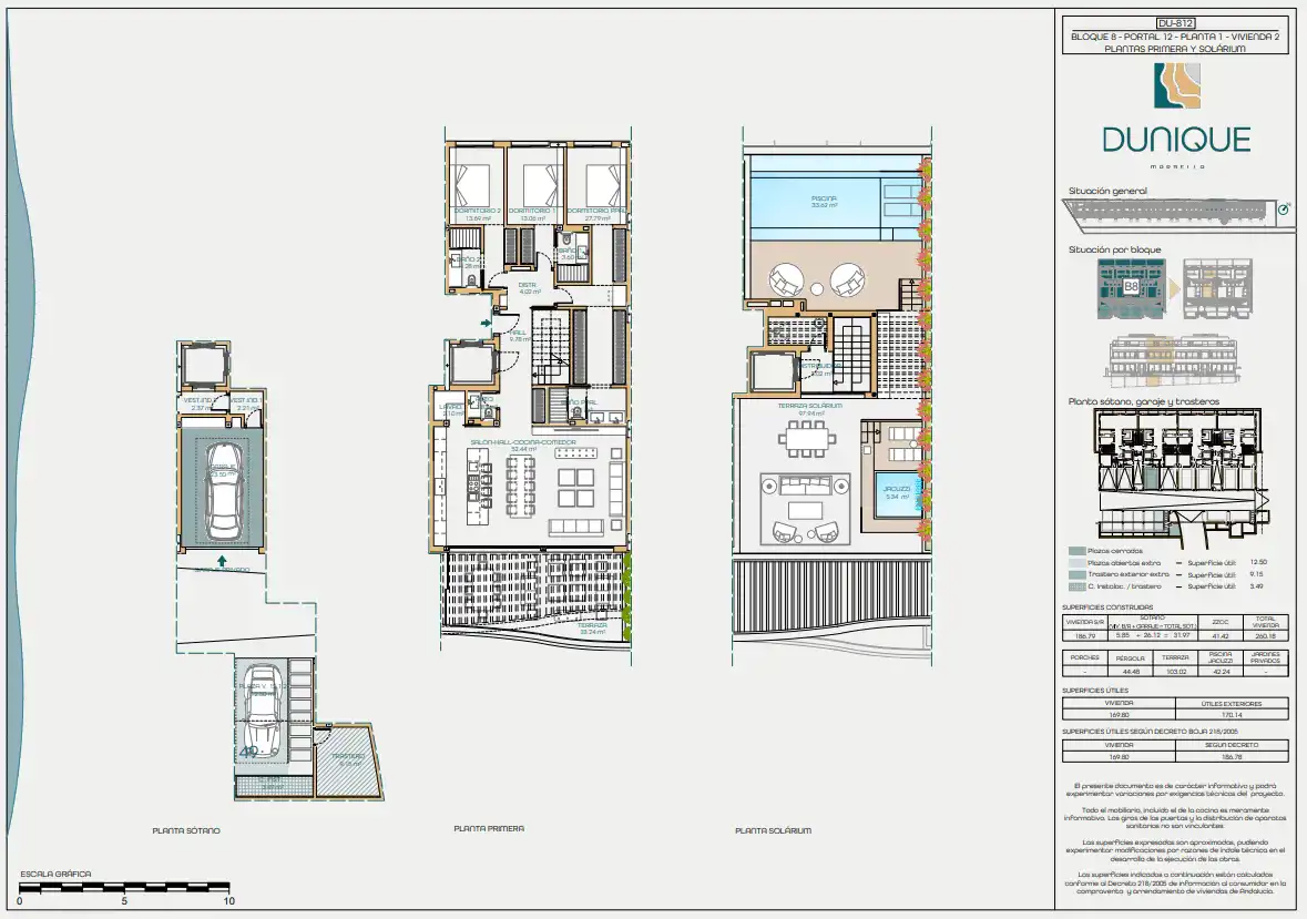 Podobnie jak sam kompleks, rezydencje zostały skrupulatnie zaprojektowane, aby zapewnić wyjątkowe wrażenia mieszkalne, dlatego oferują wyjątkową gamę materiałów, w tym najwyższej jakości płytki porcelanowe, przestronne kuchnie z najwyższej klasy urządzeniami, prywatny basen w każdym lokalu, pokojowa klimatyzacja ciepło/zimno, kompletna automatyka domowa, rolety elektryczne, ogrzewanie podłogowe w całym domu, zamykany garaż na co najmniej dwa samochody, preinstalacja do ładowania pojazdów elektrycznych i nie tylko...