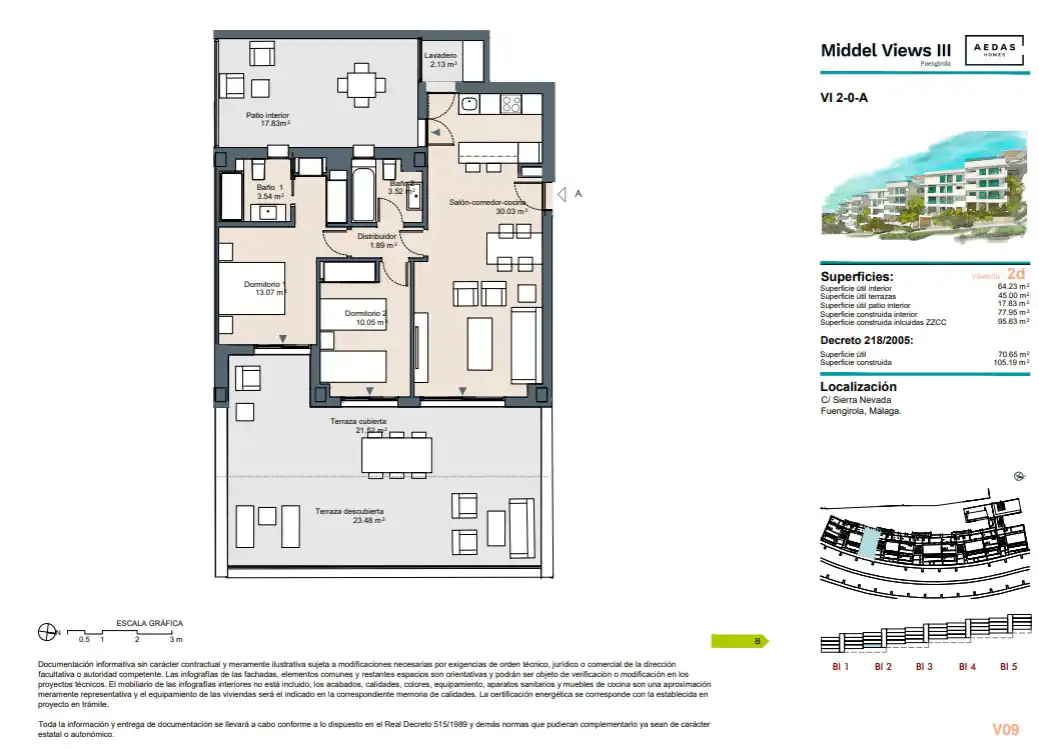 Z bezpośrednim połączeniem z lotniskiem w Maladze, znajduje się w obszarze Higuerón w Fuengirola, 5 minut spacerem do stacji kolejowej Carvajal i 10 minut spacerem do plaży Carvajal.