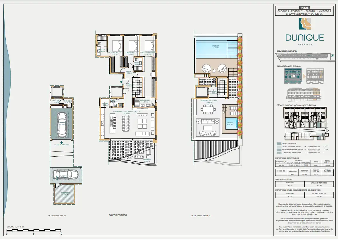 Podobnie jak sam kompleks, rezydencje zostały skrupulatnie zaprojektowane, aby zapewnić wyjątkowe wrażenia mieszkalne, dlatego oferują wyjątkową gamę materiałów, w tym najwyższej jakości płytki porcelanowe, przestronne kuchnie z najwyższej klasy urządzeniami, prywatny basen w każdym lokalu, pokojowa klimatyzacja ciepło/zimno, kompletna automatyka domowa, rolety elektryczne, ogrzewanie podłogowe w całym domu, zamykany garaż na co najmniej dwa samochody, preinstalacja do ładowania pojazdów elektrycznych i nie tylko...