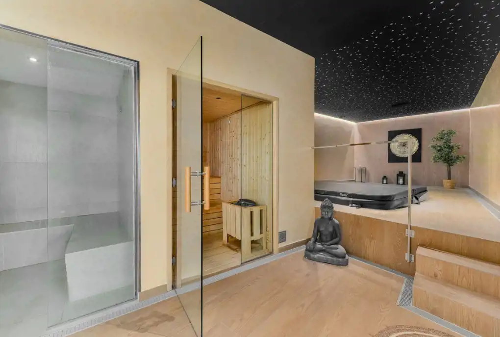 Duże przeszklenia zapewniające naturalne światło i widok na morze