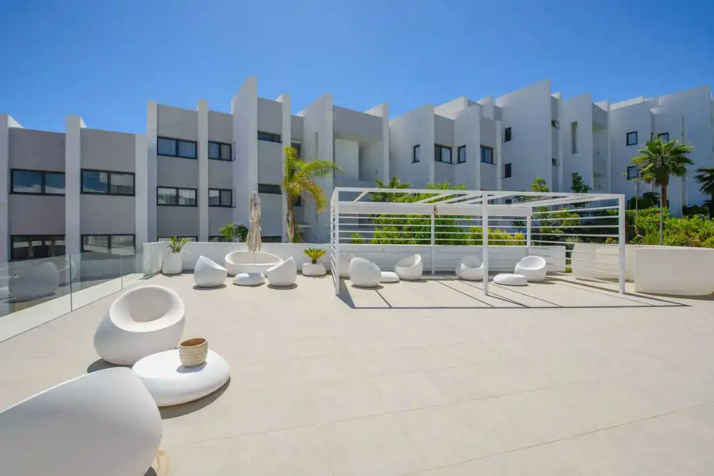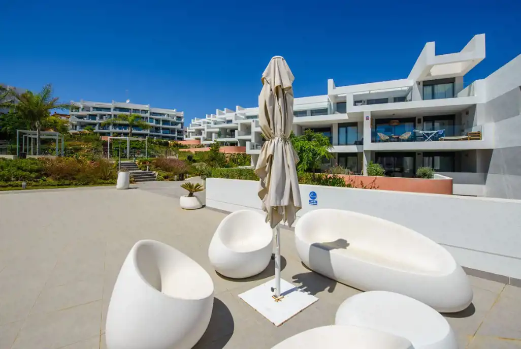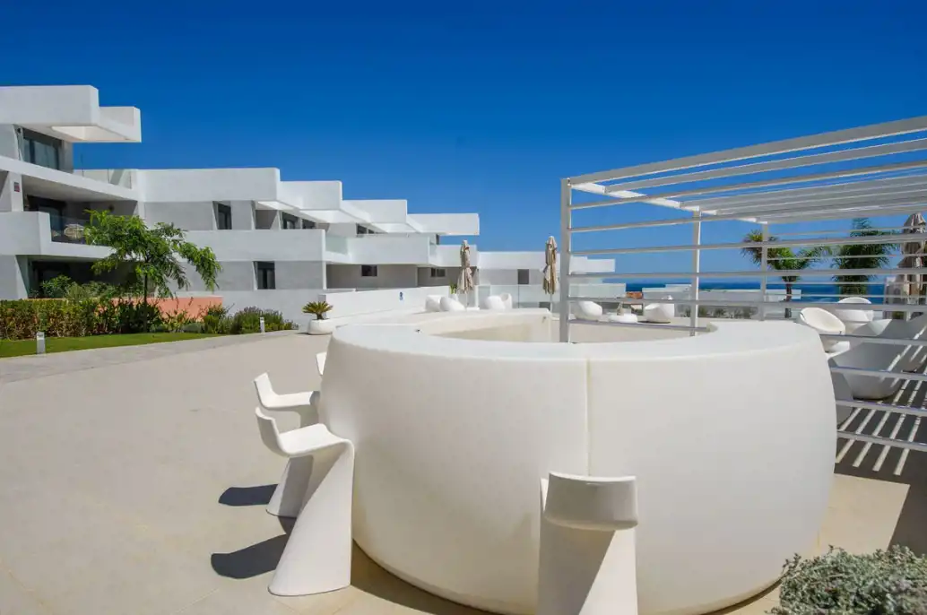 Prezentujemy elegancki, nowoczesny apartament w prestiżowej inwestycji, położonej w nadmorskiej miejscowości Manilva. To miejsce stworzone z myślą o osobach ceniących komfort, nowoczesny design i bliskość morza — zaledwie 400 metrów od plaży.