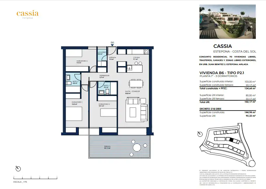 Świetna inwestycja 78 domów zlokalizowanych w obszarze rozbudowy Estepony, z łatwym dostępem do centrum miasta na piechotę. Składa się z domów z 1 do 4 sypialni na parterze z dużymi ogrodami, apartamentów z tarasami i penthouse'ami oraz dwupoziomowych penthouse'ów z dużymi tarasami. Domy wychodzą na południe, a niektóre oferują wspaniałe widoki. Na zamkniętym osiedlu znajduje się basen, wyposażona siłownia i wielofunkcyjna świetlica.