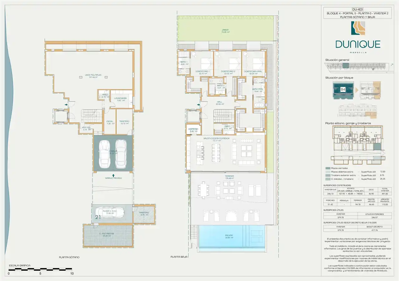 Dunique znajduje się 4 kilometry na wschód od centrum Marbelli i wszystkich jej różnorodnych atrakcji gastronomicznych, kulturalnych i rekreacyjnych, w dobrze znanej dzielnicy „Las Chapas”. Ta cicha dzielnica mieszkaniowa wyróżnia się swoją linią brzegową, na której znajdują się najpiękniejsze i najbardziej znane plaże w Marbelli, nie tylko ze względu na ich rozbudowę, ale także wspaniałą atmosferę okolicznych klubów plażowych.
