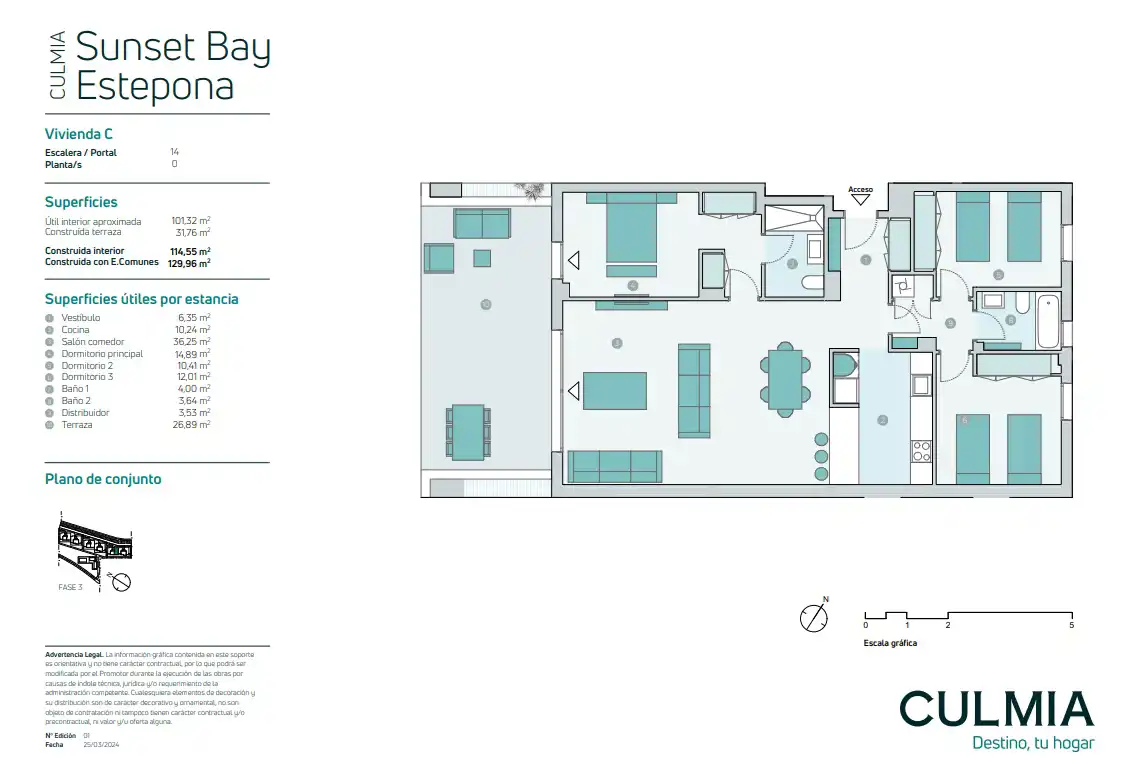 Culmia Sunset Bay Estepona składa się ze 174 apartamentów z dużymi tarasami i panoramicznym widokiem na morze od strony południowo-zachodniej. Domy posiadają naziemne miejsce parkingowe oraz komórkę lokatorską w trakcie rozwoju urbanizacji.