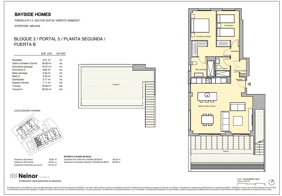 Bayside Homes ma uprzywilejowaną lokalizację w dzielnicy Arroyo Enmedio, zaledwie kilka minut od plaży, w cichej okolicy na przedmieściach. Ta prężnie rozwijająca się dzielnica słynie z szerokiego zakresu usług, międzynarodowych szkół, supermarketów, szpitali, rozbudowanych obiektów sportowych i terenów zielonych.