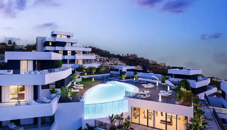 MedBlue Marbella to wyjątkowy projekt, którego specjalna konstrukcja sprawia, że doskonale integruje się z naturalnym środowiskiem, w którym znajdziesz doskonałe usługi w zakresie wypoczynku i odnowy biologicznej z przestrzeniami ogrodowymi, podgrzewanym basenem zewnętrznym i krytym, siłownią, barem przy basenie, strefą spa i przestrzenią coworkingową .