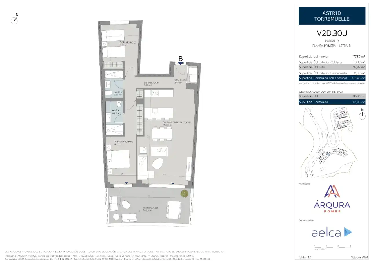 Wyobraź sobie, że budzisz się każdego dnia w jasnej i przestronnej przestrzeni, z widokiem na morze. Nasza inwestycja, składająca się z 74 mieszkań wielorodzinnych z 2 i 3 sypialniami, daje Ci możliwość posiadania własnego miejsca w uprzywilejowanej lokalizacji. Przestronne tarasy oraz wspólne tereny z ogrodami i basenem czynią Astrid Torremuelle doskonałym miejscem do odpoczynku i relaksu.