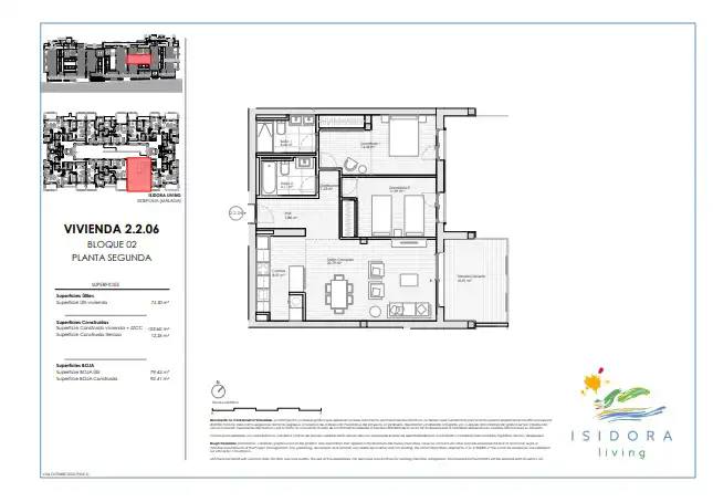 Isidora Living składa się ze 102 apartamentów i penthouse'ów z 1, 2 i 3 sypialniami, o powierzchni zabudowy do 102,75 m2, tarasami do 97,36 m2 i ogrodami na parterze do 52,03 m2.