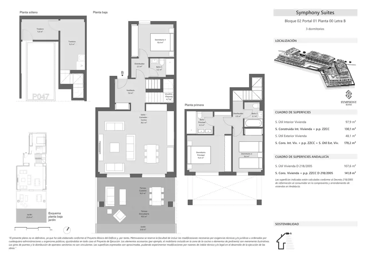 Domy w kompleksie Symphony Suites zostały zaprojektowane tak, aby oferować wszystko, czego potrzebujesz. Na parterze ogródek i piwnica, a w penthouse'ach spektakularne i przestronne tarasy oraz solarium na ostatnim piętrze. Jednym z najważniejszych aspektów kompleksu jest jego układ architektoniczny i orientacja, dzieki temu, że większość domów ma niezakłócony widok na morze, nawet na parterze, ponieważ niektóre są typologią dupleksową.