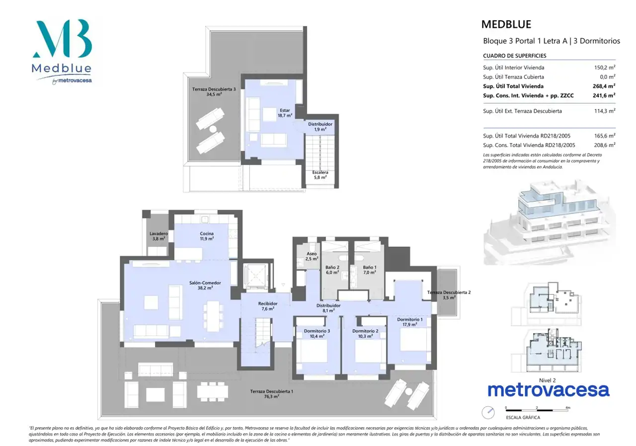 MedBlue Marbella to ekskluzywny kompleks mieszkaniowy składający się z luksusowych apartamentów dwupoziomowych i penthouse'ów. Położona w górnej części Los Monteros, ta nowoczesna inwestycja obejmuje domy z 2, 3 i 4 sypialniami o zrównoważonym układzie i otwartych pokojach, które zostały wyposażone w najwyższej jakości udogodnienia i duże tarasy z niesamowitym widokiem na morze.
