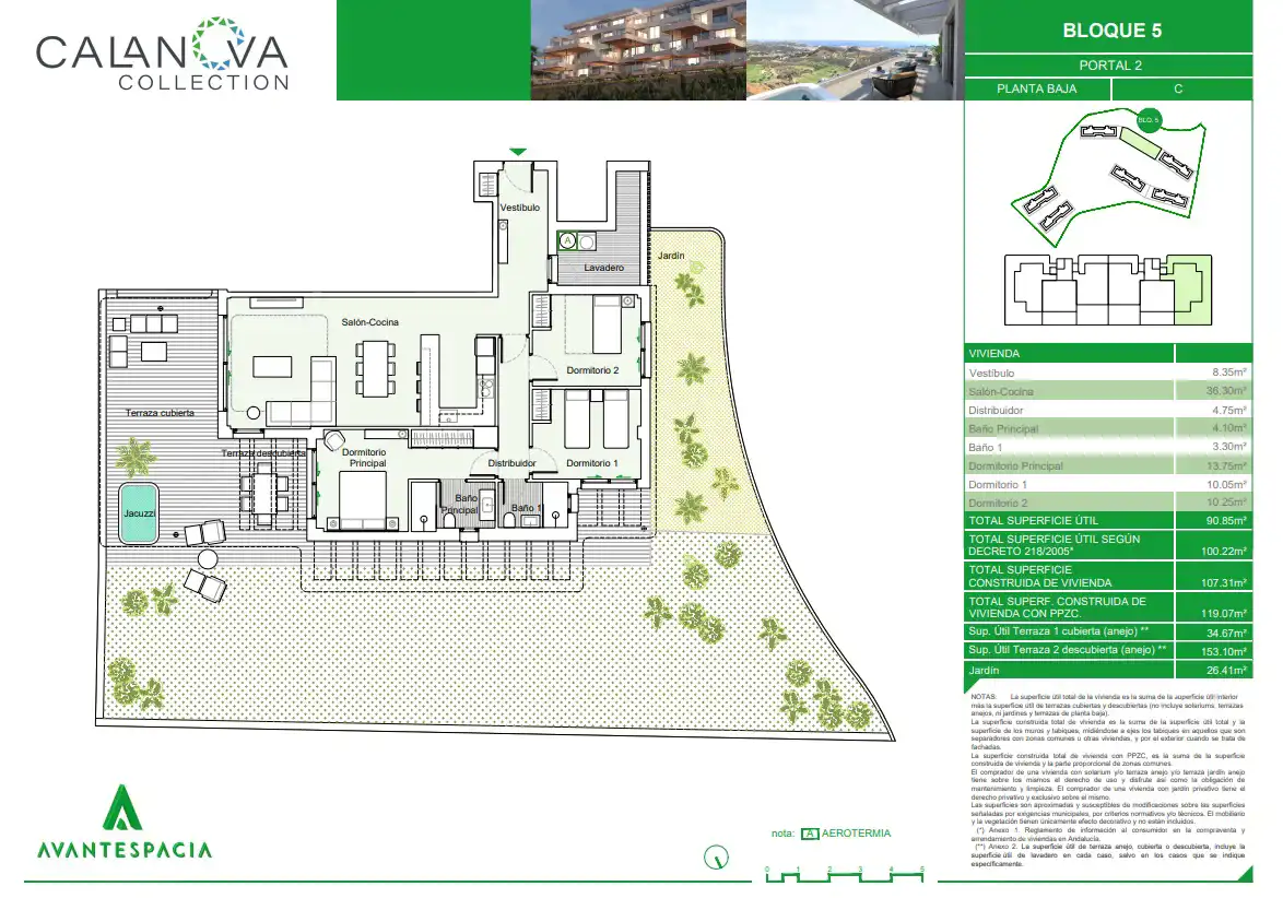 Podwyższone mieszkania na parterze mają rozległe tarasy, jacuzzi, a niektóre mają własny ogród, podczas gdy apartamenty na pierwszym i drugim piętrze oferują rozległe tarasy ze spektakularnymi widokami.