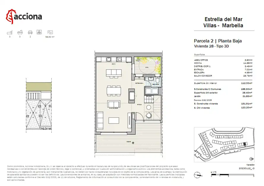 Estrella del Mar Villas Marbella to nowe osiedle składające się z 52 kamienic, z 3 i 4 sypialniami na dwóch poziomach, na parterze i pierwszym piętrze, z prywatnym ogrodem, zadaszoną werandą/tarasem, pergolą i dwoma prywatnymi miejscami parkingowymi.