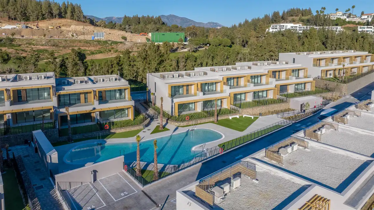 Kameralny, zamknięty kompleks 80 nowoczesnych domów w zabudowie szeregowej, położony w El Chaparral - pomiędzy La Cala de Mijas a Fuengirolą. Inwestycja łączy bezpośrednie sąsiedztwo pola golfowego z bliskością plaży i pełnej infrastruktury Costa del Sol. To propozycja dla osób szukających przestronnego domu wakacyjnego lub całorocznej rezydencji w spokojnej, zielonej lokalizacji, z szybkim dostępem do atrakcji regionu. Duże przeszklenia, południowa i południowo‑zachodnia ekspozycja oraz rozległe tarasy zapewniają maksymalne doświetlenie wnętrz i komfort użytkowania.