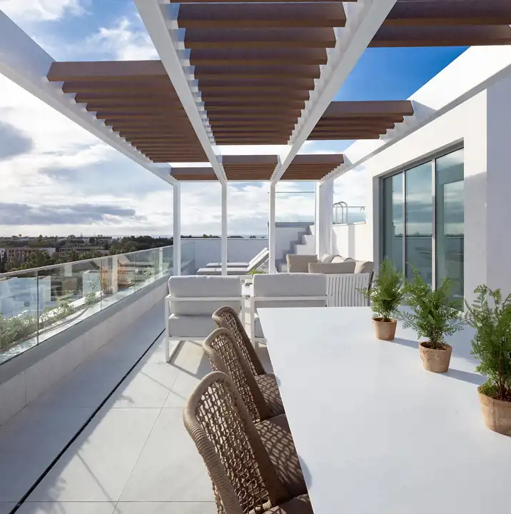 Kameralna inwestycja 104 apartamentów z 3 i 4 sypialniami, położona w pierwszej linii pola golfowego Santa Clara w Marbelli. Projekt łączy współczesną architekturę, wysoką jakość wykonania i prywatne baseny przy każdym lokalu. Osiedle zamknięte oferuje rozbudowane części wspólne oraz pełną prywatność w otoczeniu zieleni i śródziemnomorskiego krajobrazu. To propozycja dla osób poszukujących komfortowego domu w prestiżowej lokalizacji Costa del Sol.