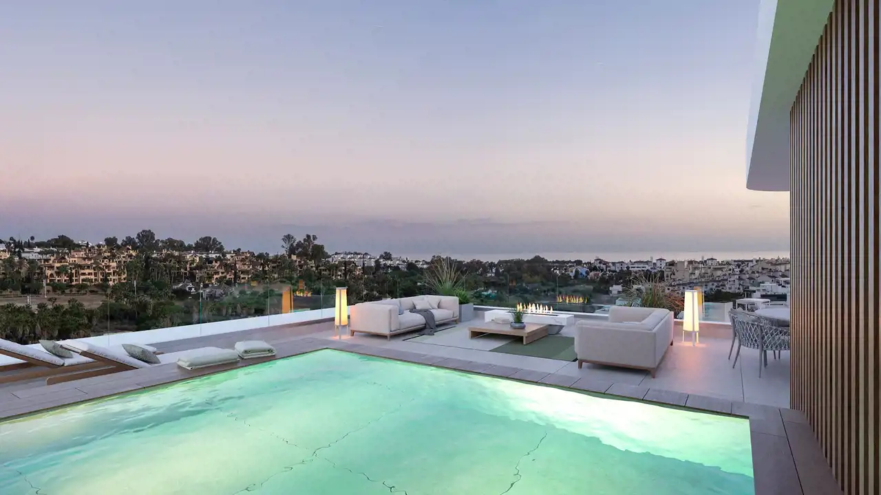 Kompleks 15 nowoczesnych domów w zabudowie bliźniaczej, zlokalizowany w prestiżowej części El Campanario na New Golden Mile. Inwestycja łączy współczesną architekturę z panoramicznymi widokami oraz prywatnością charakterystyczną dla zabudowy jednorodzinnej. Każdy dom oferuje prywatny basen, jacuzzi na solarium oraz windę łączącą wszystkie kondygnacje. To propozycja dla wymagających klientów, którzy oczekują przestrzeni, wysokiego standardu oraz dostępu do infrastruktury rekreacyjnej.