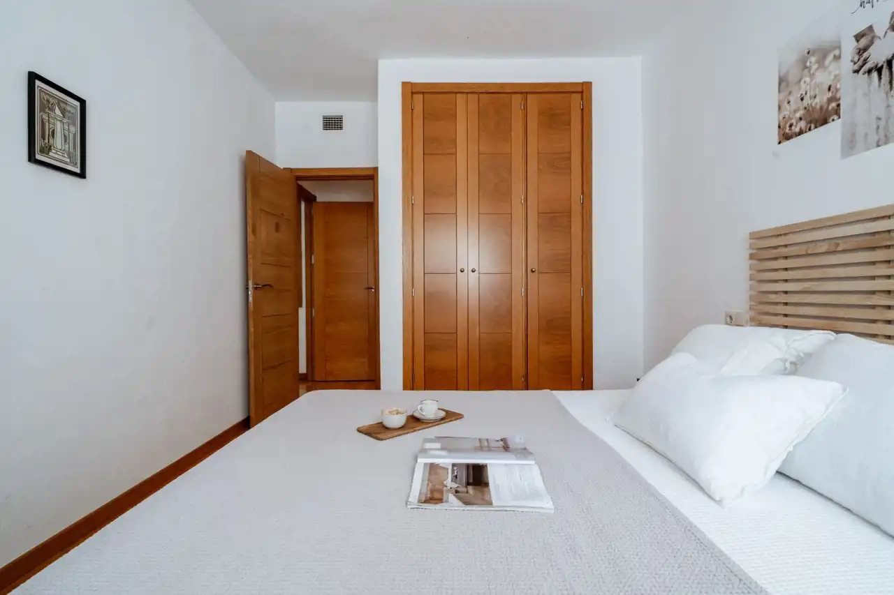 Przestronna sypialnia ma m.in. na wyposażeniu wbudowaną szafę, zapewniającą dużo miejsca do przechowywania, a nowoczesna łazienka jest zaprojektowana ze smakiem.