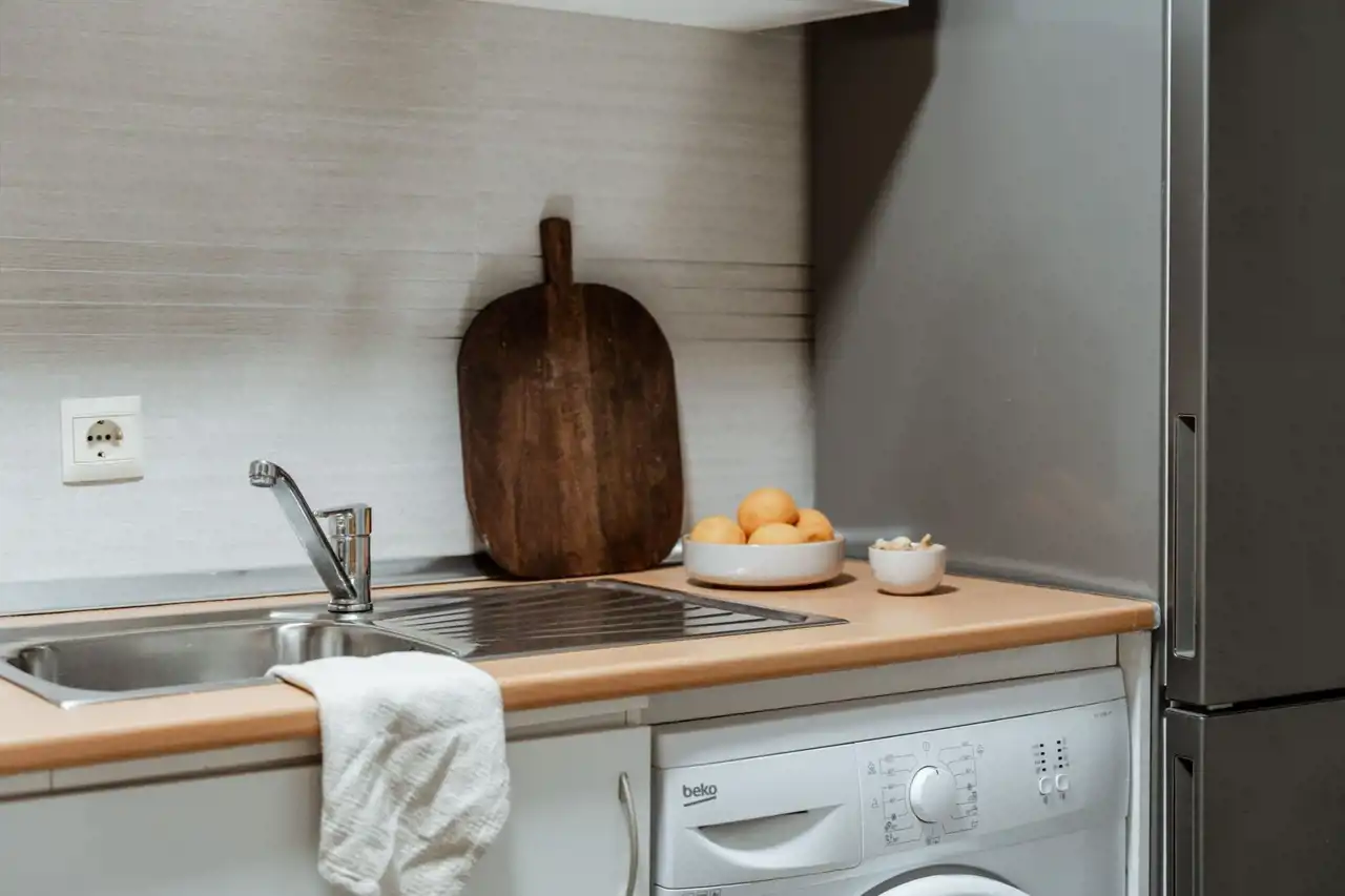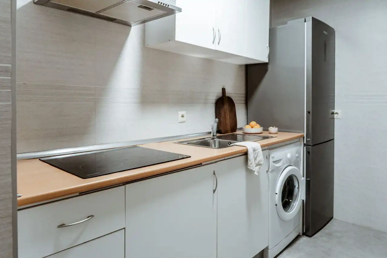 Kuchnia z nowym wyposażeniem AGD, wygodna do gotowania i przyjmowania gości.