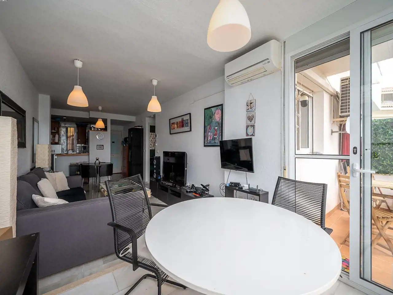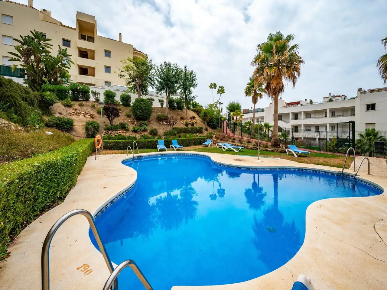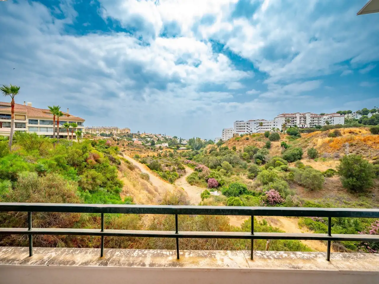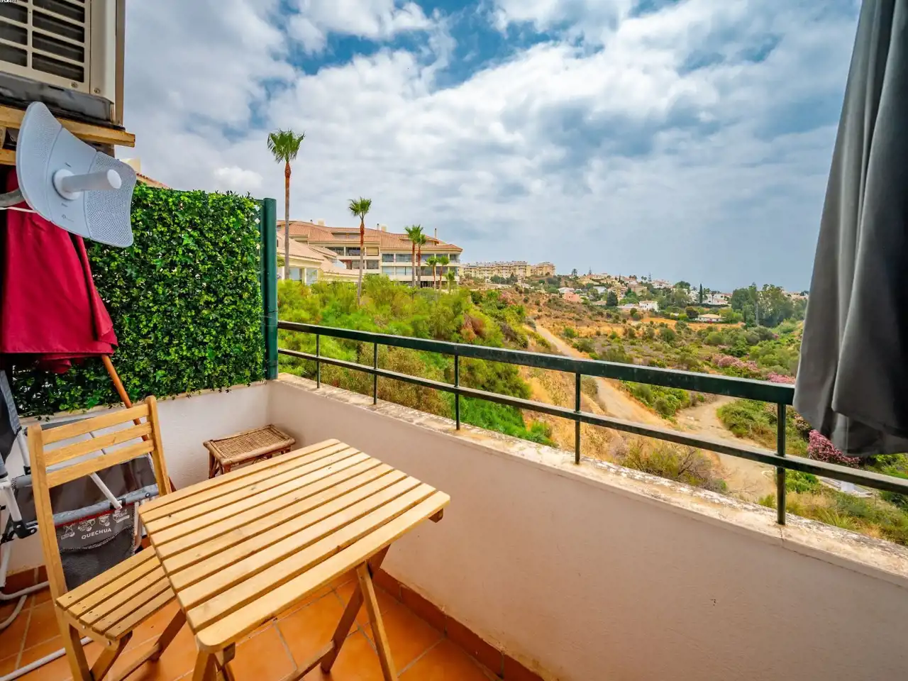 Położony w Riviera del Sol, ten apartament na pierwszym piętrze składa się z super salonu, gdzie część tarasu została wykorzystana do przedłużenia salonu, wyposażonej kuchni, dwóch sypialni dwuosobowych, jednej pełnej łazienki oraz tarasu z pięknym widokiem na zieloną dolinę aż do morza! Za drzwiami wejściowymi znajduje się drugi bardzo przestronny prywatny taras, na którym obecnie stoi dobrze zbudowany domek oraz mnóstwo miejsca do relaksu z gośćmi i grillowania!. W cenę wliczone są DWA miejsca parkingowe oraz DWA pomieszczenia gospodarcze. Kompleks jest dobrze utrzymany i ma wspólny basen oraz kort do padla. Mamy klucze!
