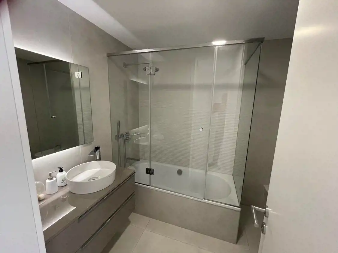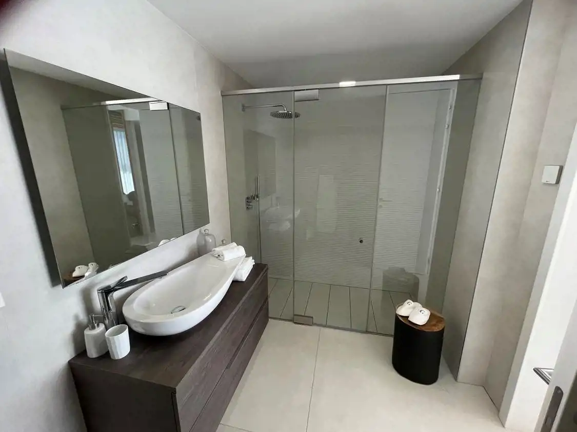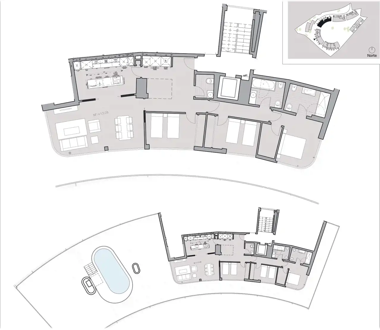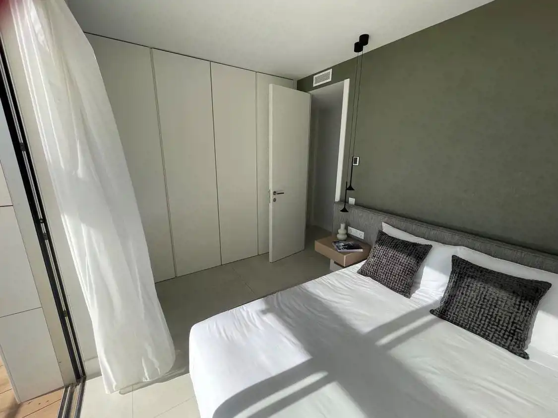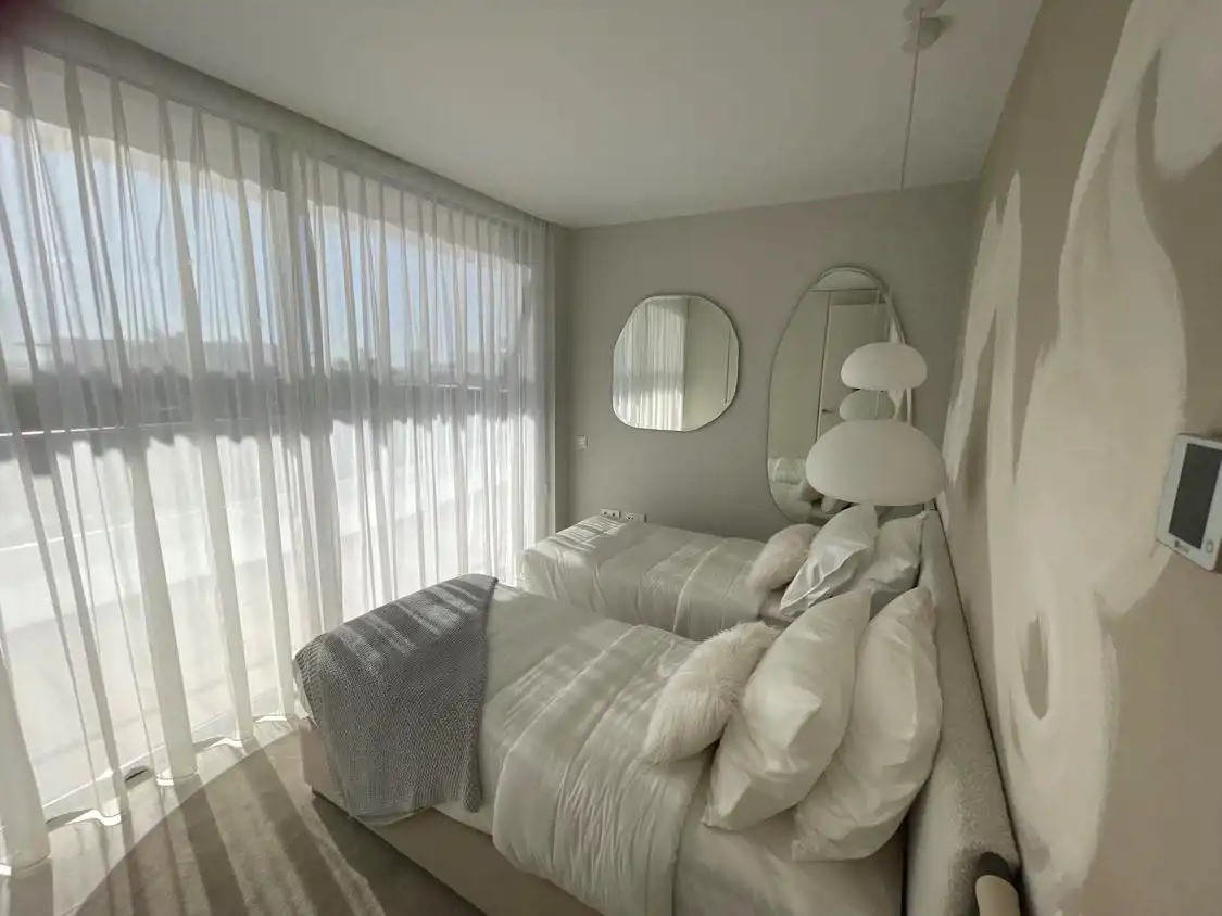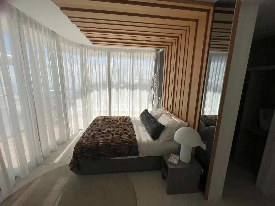Penthouse o powierzchni 156m2 składa się z 3 sypialni, 2 łazienek, kuchni połączonej z salonem oraz tarasu z własnym basenem o powierzchni 360m2.