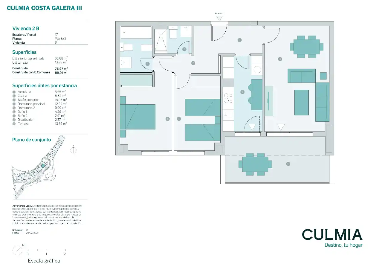 Culmia Costa Galera III jest dogodnie położona w obszarze Velilla-Tramay, na wybrzeżu Costa Tropical w Granadzie, 300 metrów od plaży, ze wszystkimi niezbędnymi usługami w pobliżu centrów medycznych, szkół, supermarketów, terenów sportowych, terenów rekreacyjnych, a także parków, punktów widokowych i restauracji, w których można delektować się bogatą kuchnią z szeroką gamą owoców morza i ryb.