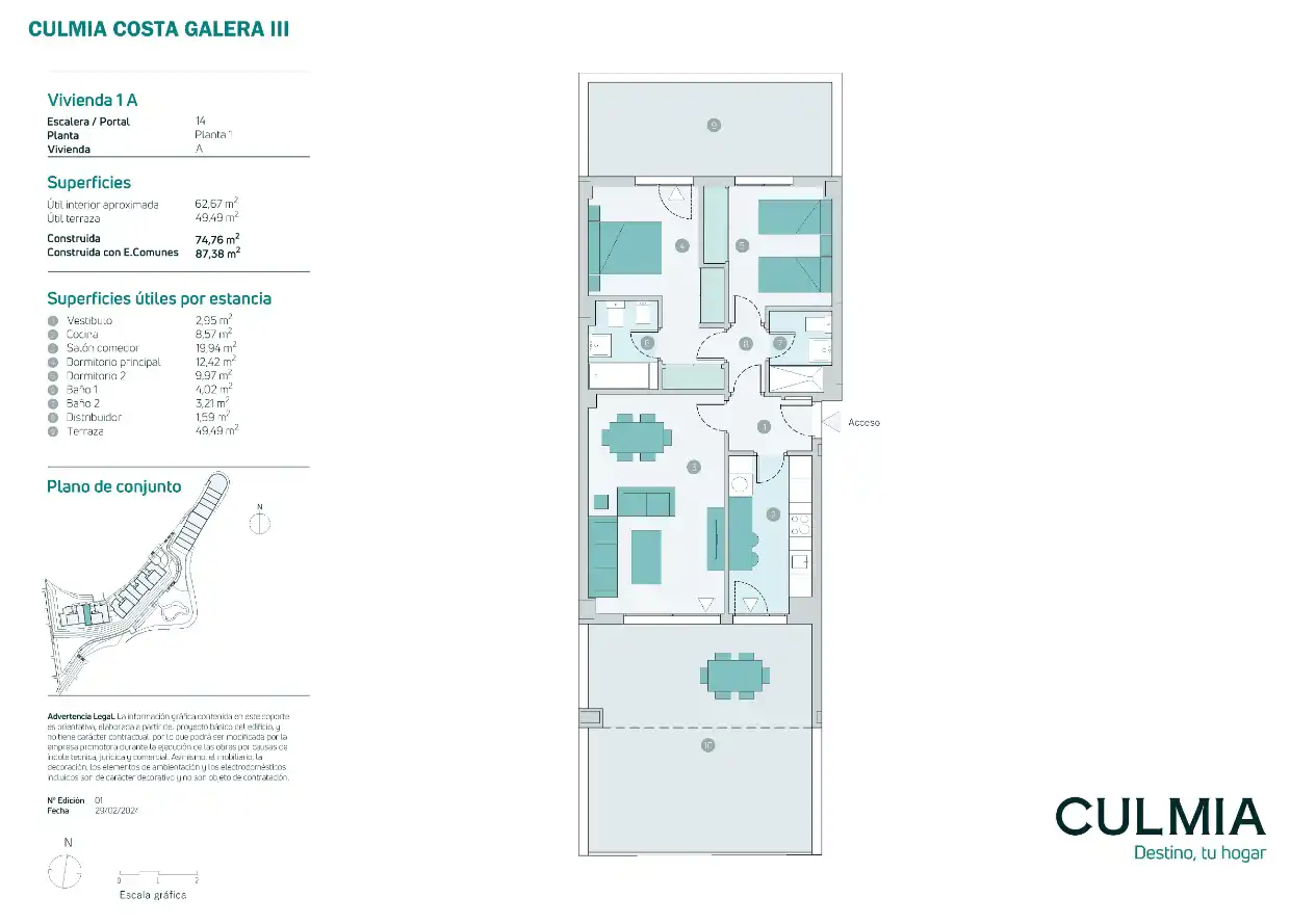 Culmia Costa Galera III jest dogodnie położona w obszarze Velilla-Tramay, na wybrzeżu Costa Tropical w Granadzie, 300 metrów od plaży, ze wszystkimi niezbędnymi usługami w pobliżu centrów medycznych, szkół, supermarketów, terenów sportowych, terenów rekreacyjnych, a także parków, punktów widokowych i restauracji, w których można delektować się bogatą kuchnią z szeroką gamą owoców morza i ryb.