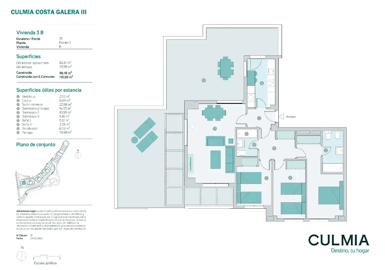 Culmia Costa Galera III jest dogodnie położona w obszarze Velilla-Tramay, na wybrzeżu Costa Tropical w Granadzie, 300 metrów od plaży, ze wszystkimi niezbędnymi usługami w pobliżu centrów medycznych, szkół, supermarketów, terenów sportowych, terenów rekreacyjnych, a także parków, punktów widokowych i restauracji, w których można delektować się bogatą kuchnią z szeroką gamą owoców morza i ryb.
