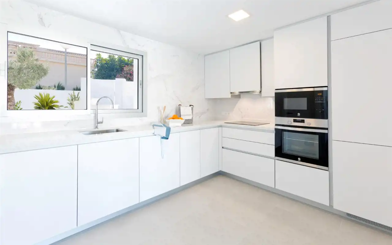 Willa rozplanowana jest na jednym poziomie. Składa się z 3 sypialni, 2 łazienek, nowoczesnej kuchni z przylegającą do niej spiżarnią, salonu z wyjściem na taras i do ogrodu oraz studia, które może być wykorzystane jako kolejna sypialnia. Powierzchnia podana łącznie z powierzchnią tarasów.