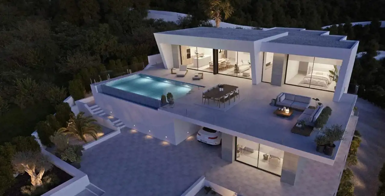 Wyjątkowa luksusowa willa położona w Cumbre del Sol, Costa Blanca w spokojnej mieszkalnej dzielnicy z pięknym widokiem na morze. Powierzchnia całkowita budynku to aż 657m2, podzielona na 2 piętra gdzie znajdziemy 3 sypialnie i 2 łazienki. Budynek wykończony w najwyższym standardzie,klasa energetyczna A oraz specjalne rozplanowanie pomieszczeń dzięki któremu świałto dzienne wypełnia je caly rok. Główna sypialnia posiada wyjście na taras oraz łazienke typu en suite wyposażoną w duże okna z widokiem na morze. Salon z kuchnią i jadalnią otwiera się przez szerokie szklane drzwi na spektakularny letni taras skąd można podziwiać wyjątkowe widoki o każdej porze dnia. Nieruchomość wyposazona w ogrzewanie podłogowe, klimatyzację a kuchnia w urządzenia elektryczne