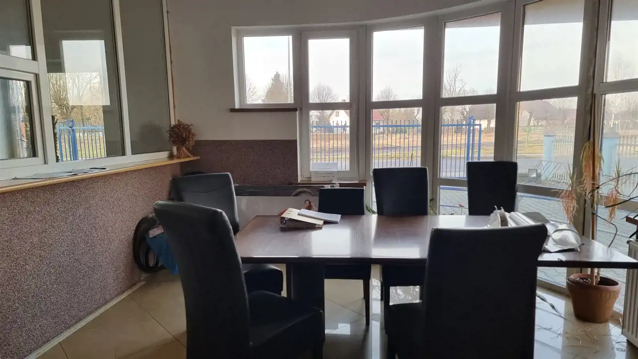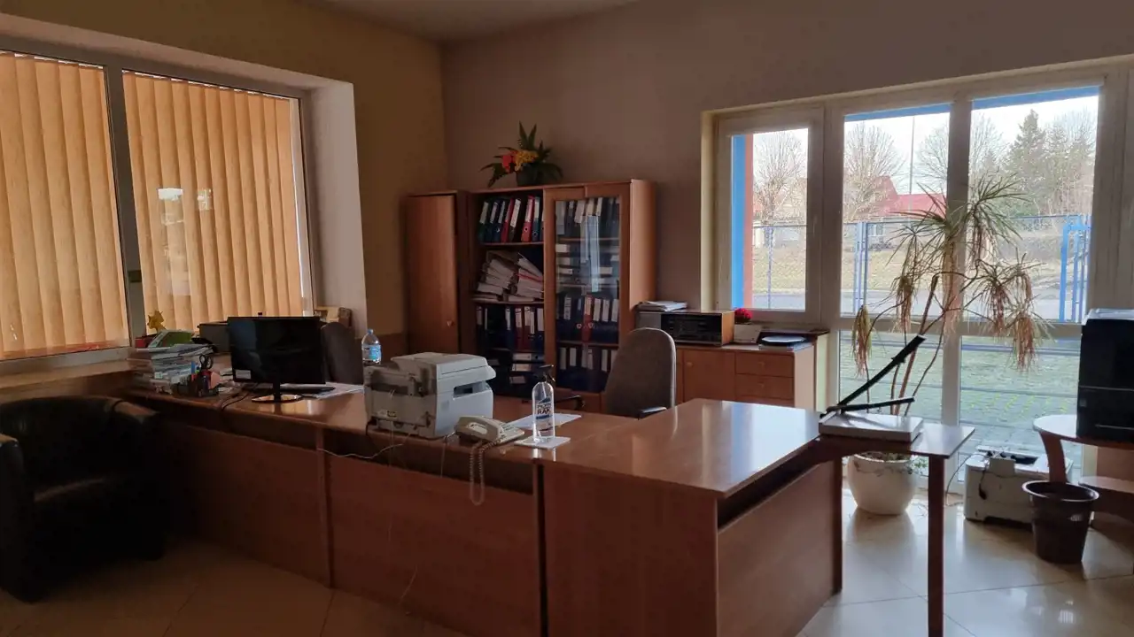 Budynek dwukondygnacyjny, niepodpiwniczony, zwarty z budynkiem hali 1. Wykonany technologii tradycyjnej. Wyposażenie w instalacje: elektryczna, wentylacja grawitacyjna, c.o. tradycyjne z własnej kotłowni, telefoniczna, siec komputerowa, wodno-kanalizacyjna, instalacja alarmowa.cena do małej negocjacji.