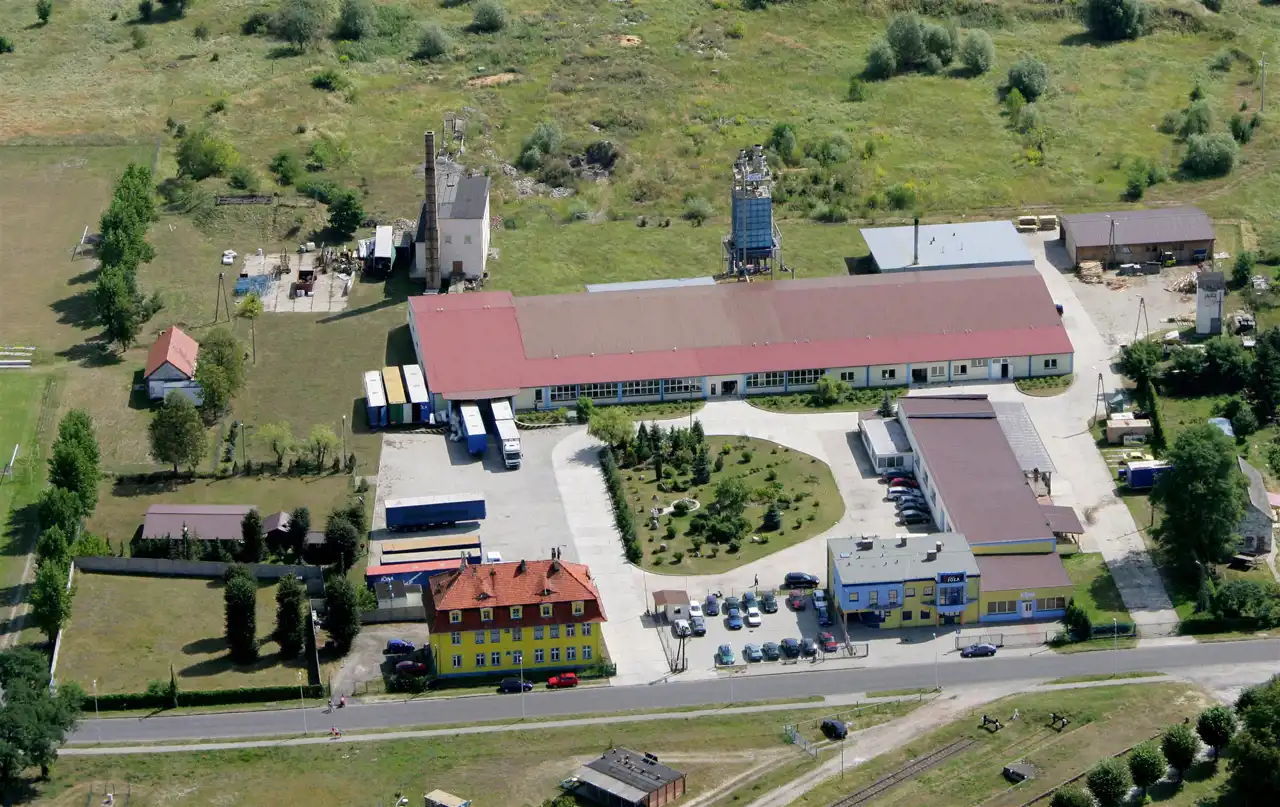 Konstrukcja: Budynek jednokondygnacyjny, bez podpiwniczenia, zwarty z obiektem biurowo - administracyjnym. Składa się z następujących części: biurowo-socjalnej, hali produkcyjnej nr 1, magazynu wyrobów gotowych, salonu wystawowego, magazynu głównego, kotłowni zasilającej obiekt nr 1. Budynek wykonany w technologii tradycyjnej. Pomieszczenia użytkowane zgodnie z przeznaczeniem. Przy hali dobudowano wiatę drewniana z dachem jednospadowym, pokrytym płyta poliwęglanową .Wolnostojąca, stacja transformatorowa wieżowa WST tp 20/400 rozdzielnia SN 15/0, 4kVz transformatorem 400KVA zasilająca