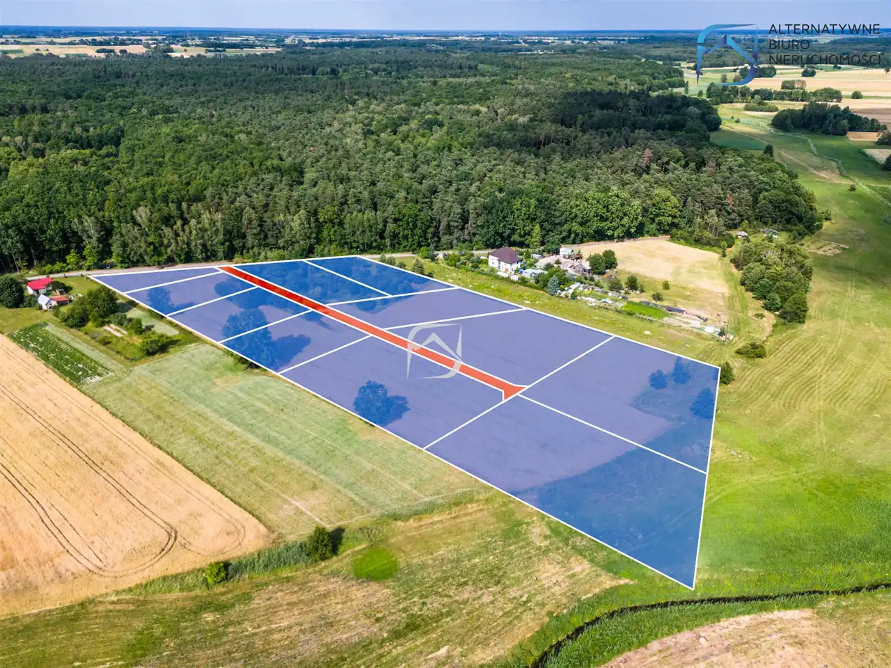 Grunty ulokowane są od pierwszej do szóstej linii zabudowy - wszystkie posiadają dostęp do drogi gminnej dzięki wewnętrznej drodze dojazdowej, w której udziały wliczone zostały w cenę działek.