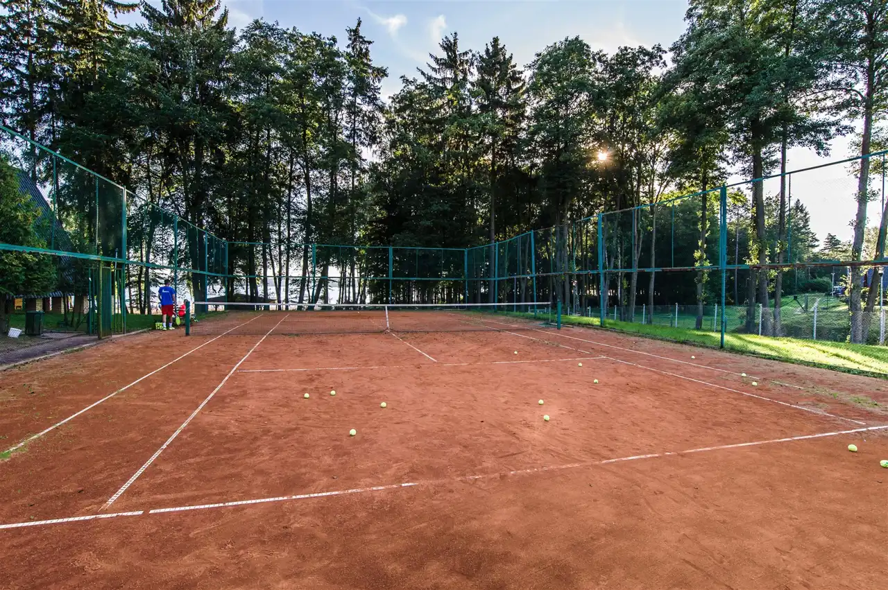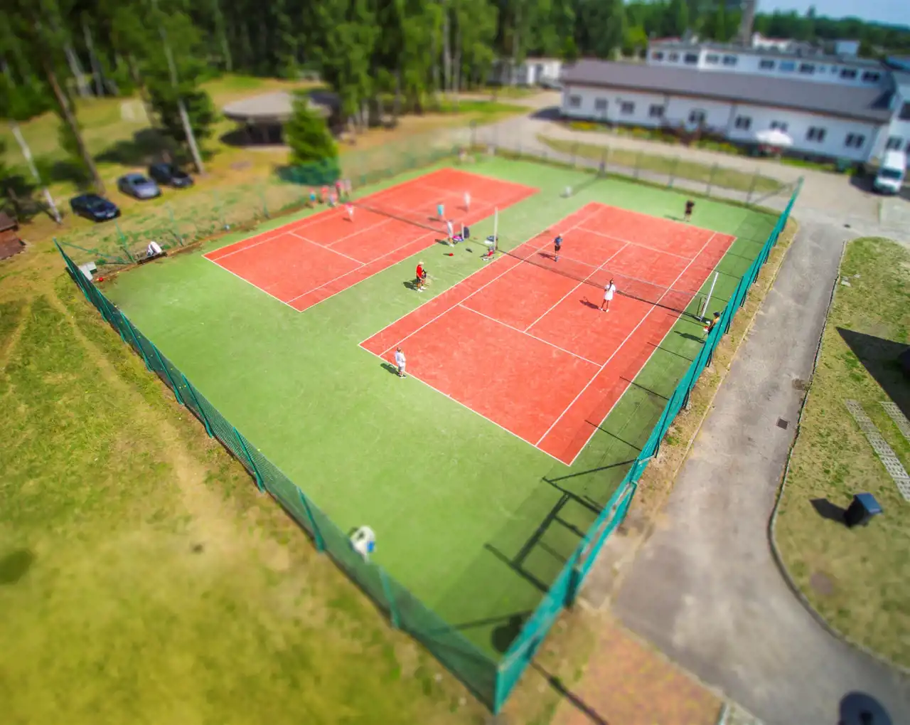 - 3 korty tenisowe, w tym 2 ze sztuczną trawą i 1 ceglasty;