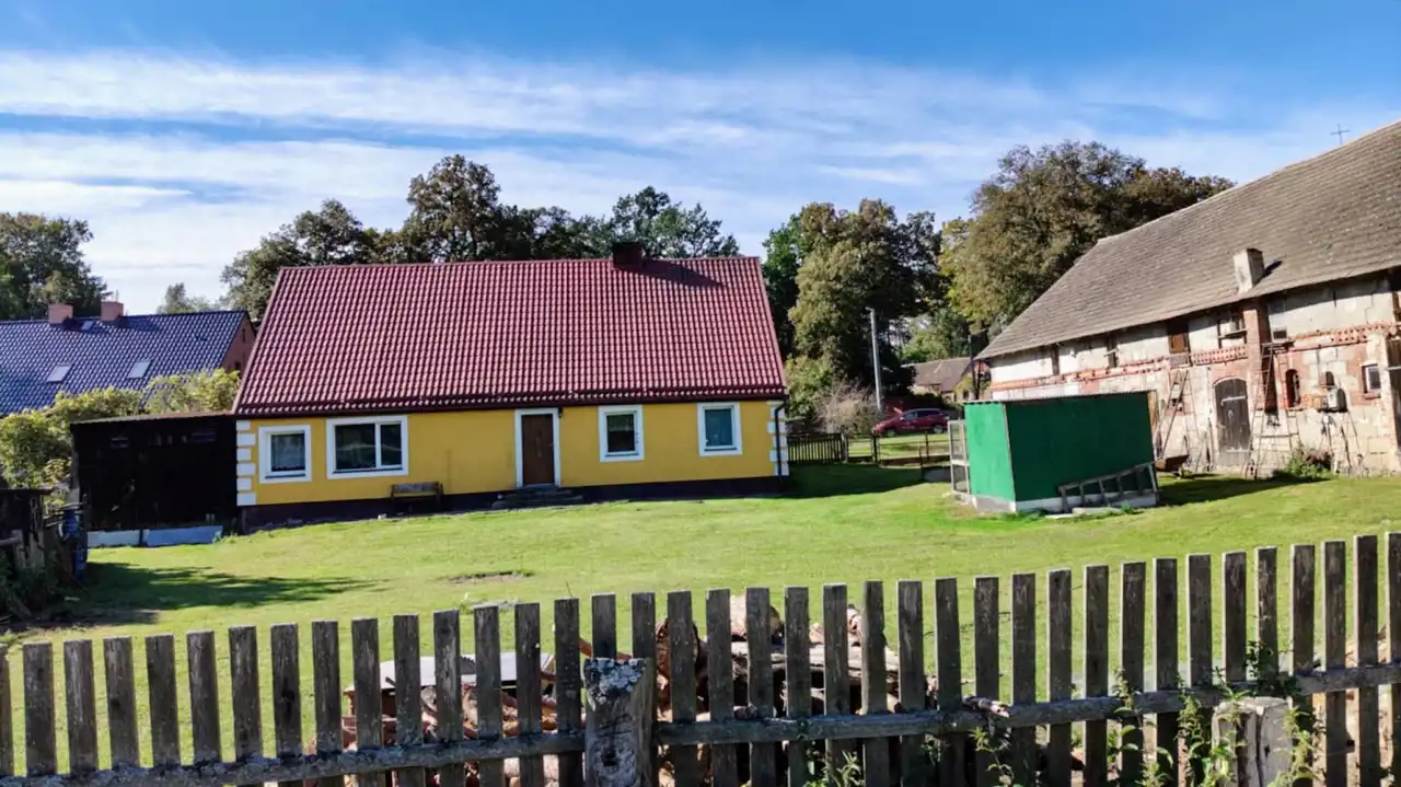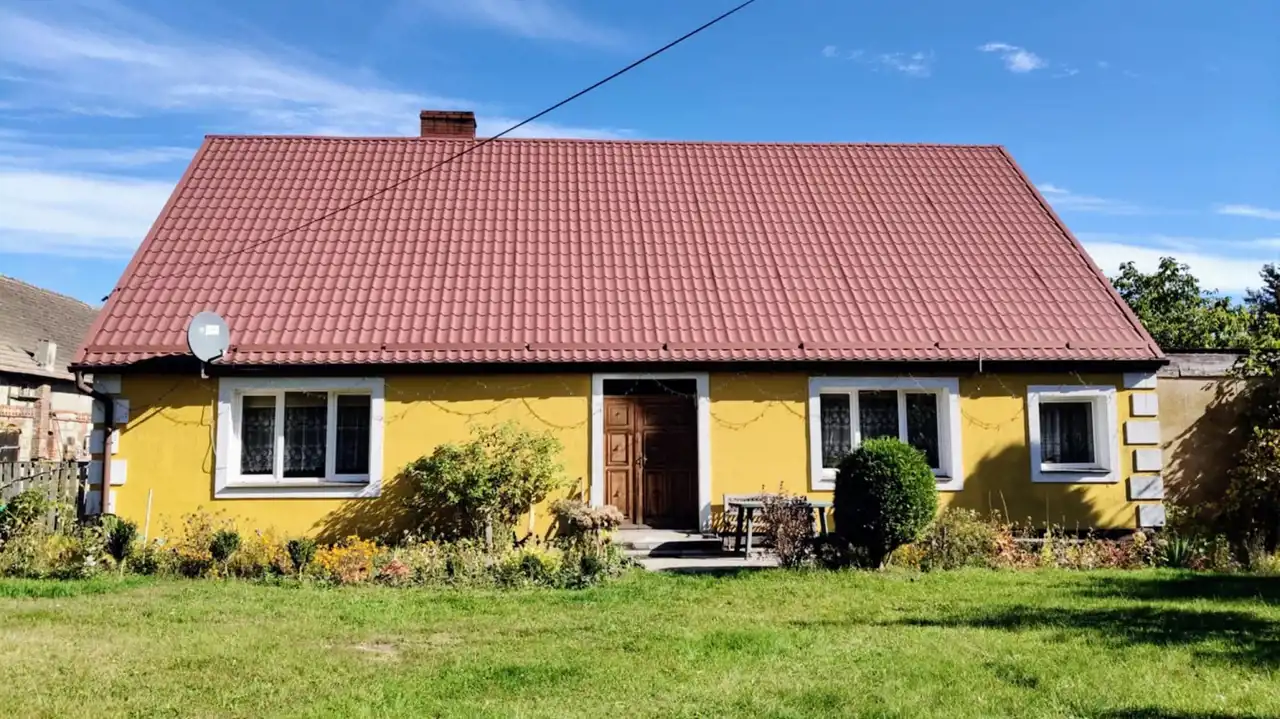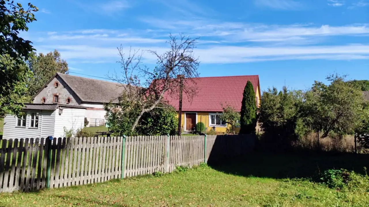 Działki o powierzchni 1,1380 ha zabudowana Domem o pow. 140 m2 składający sie z 4 pokoi, 2 kuchni oraz 2 łazienek. Rozkład pomieszczeń stanowiący 2 niezależne mieszkania z własną kuchnią i łazienką. Dom po remoncie w bardzo dobrym stanie technicznym. Dodatkowo budynek gospodarczy w którym wyodrębniona jest część garażowa. Dojazd do posesji bezpośrednio z głównej utwardzonej drogi lokalnej. Teren działki częściowo ogrodzony. Woda i kanalizacja z sieci miejskiej.