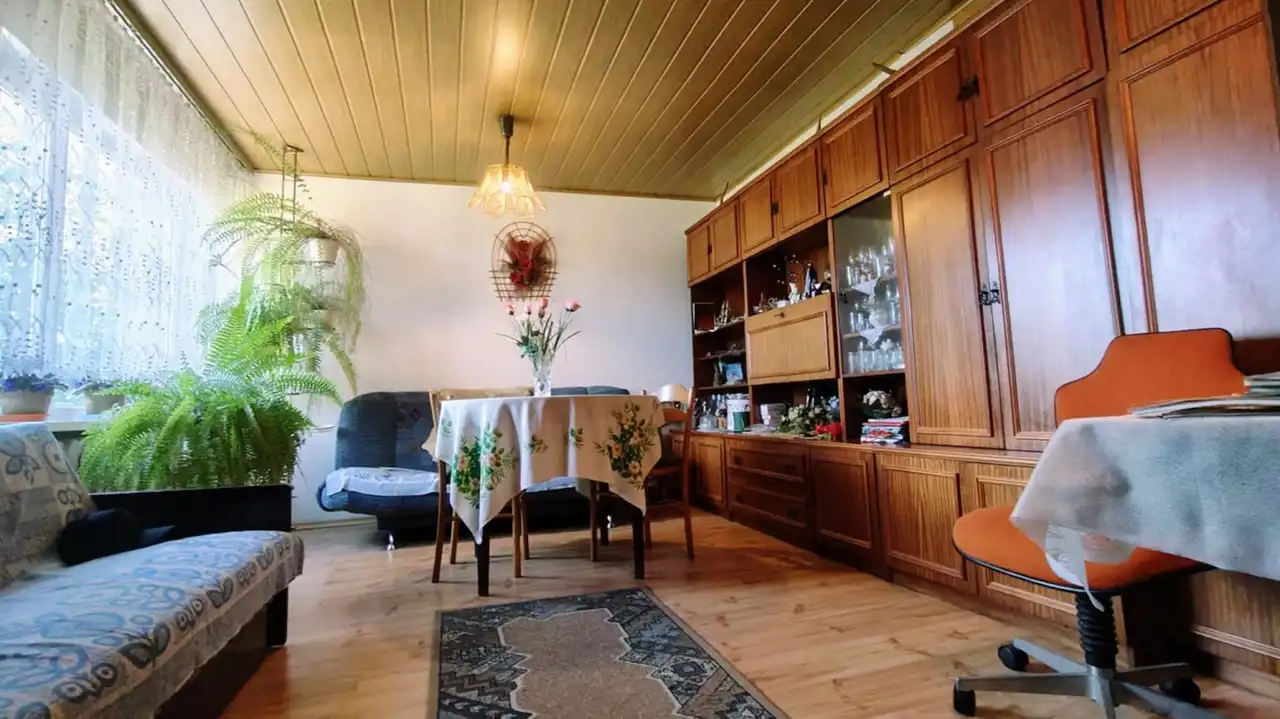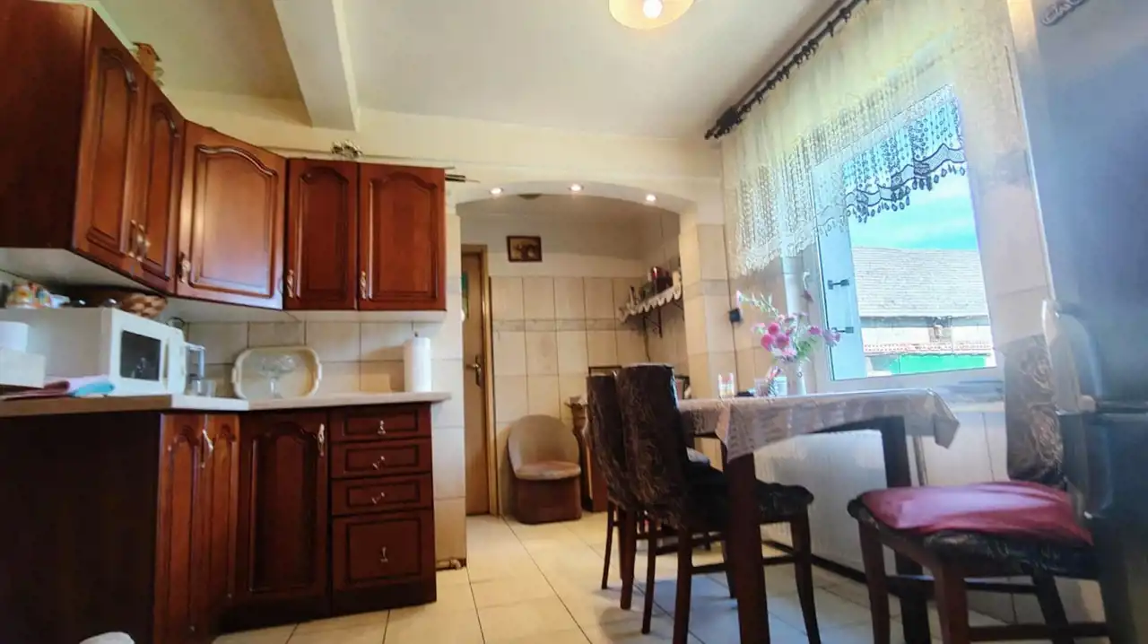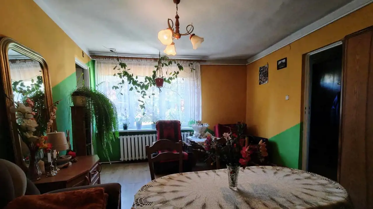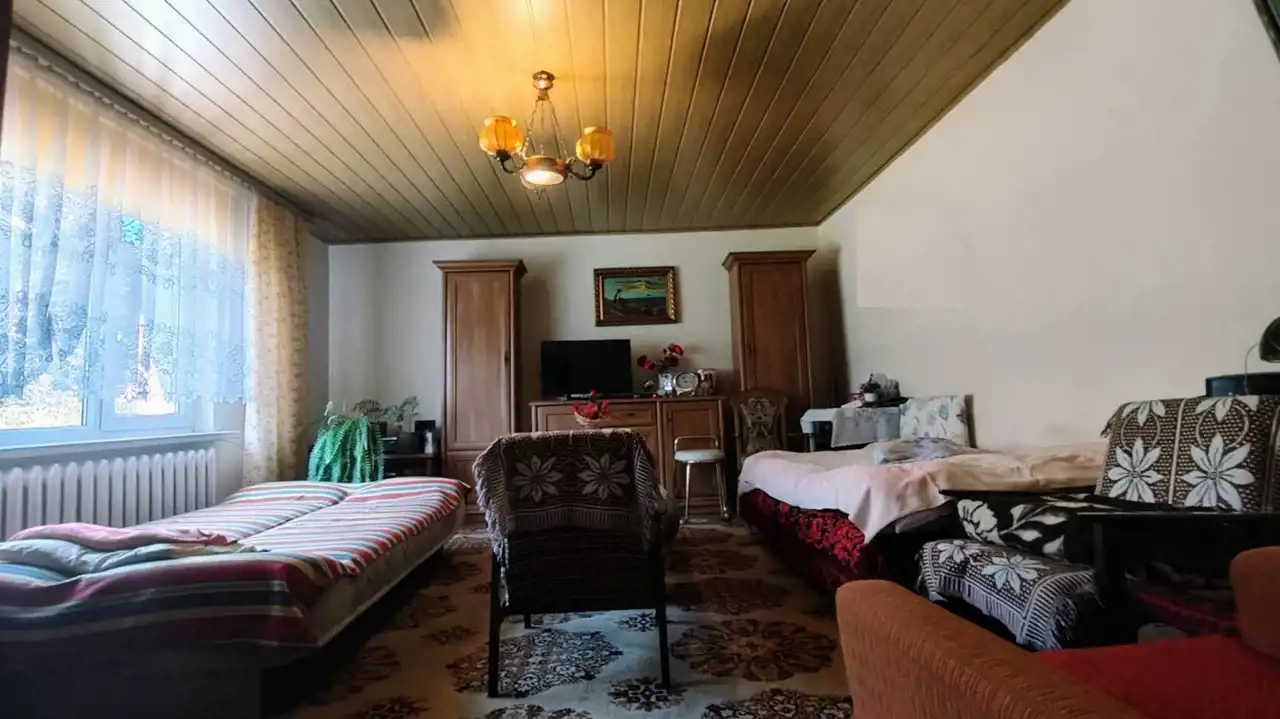 Działki o powierzchni 1,1380 ha zabudowana Domem o pow. 140 m2 składający sie z 4 pokoi, 2 kuchni oraz 2 łazienek. Rozkład pomieszczeń stanowiący 2 niezależne mieszkania z własną kuchnią i łazienką. Dom po remoncie w bardzo dobrym stanie technicznym. Dodatkowo budynek gospodarczy w którym wyodrębniona jest część garażowa. Dojazd do posesji bezpośrednio z głównej utwardzonej drogi lokalnej. Teren działki częściowo ogrodzony. Woda i kanalizacja z sieci miejskiej.