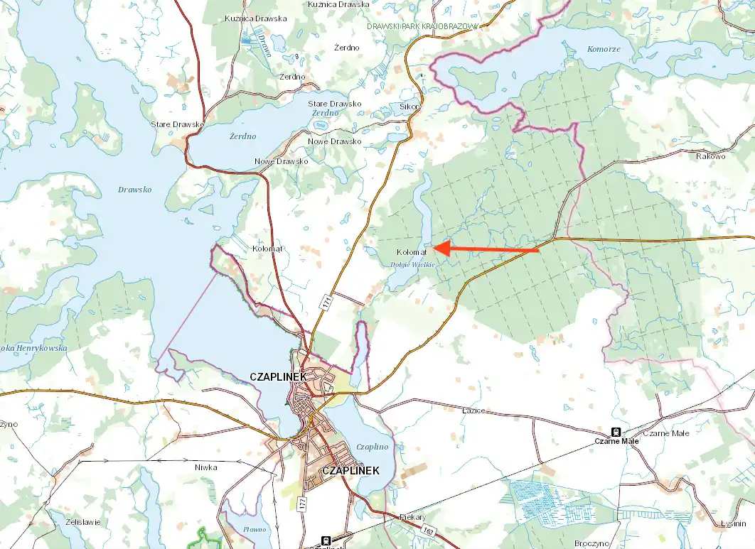 Nieruchomość gruntowa, blisko Jeziora Dołgie Wilkie w miejscowości Kołomąt, na Pojezierzu Drawskim.