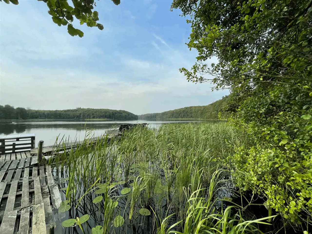 Do jeziora przez las około 150m. a drogą do polanki nad brzeg jeziora z pomostem ok. 500m.