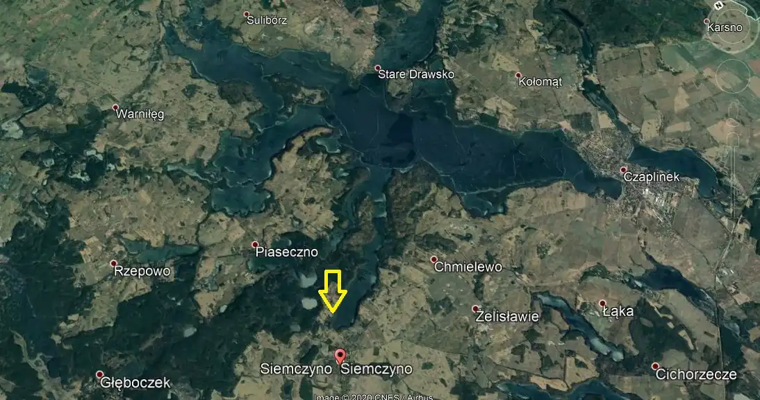 Polecam gorąco malowniczo położoną działkę nad Jeziorem Drawsko w miejscowości Siemczyno.