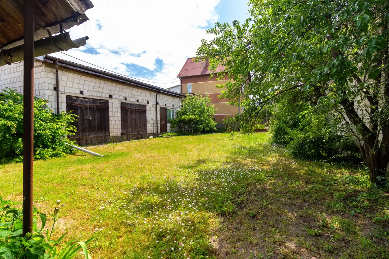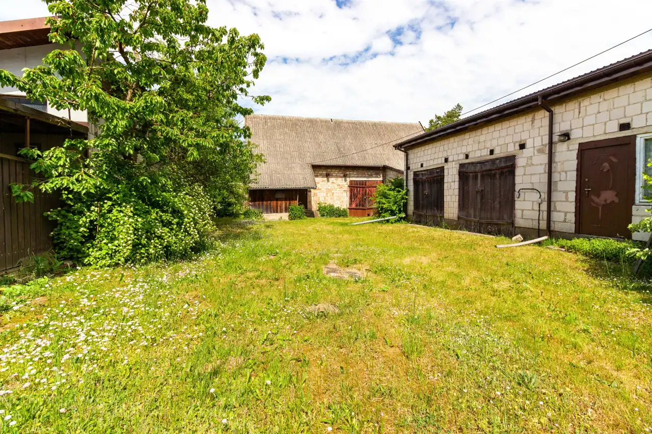 Działka ma kształt prostokąta i powierzchnię 944m2. Została podzielona na dwie strefy: dom stoi od frontu, zaś w głębi za ogrodzeniem wyodrębniono strefę z budynkami gospodarczymi. Stoi tu budynek dawnej „kuchni letniej”, chlewka, szopy oraz murowana stodoła o powierzchni ponad 90m2. Dalej zaś wygospodarowano ogródek warzywny oraz posadzono kilka drzew owocowych.