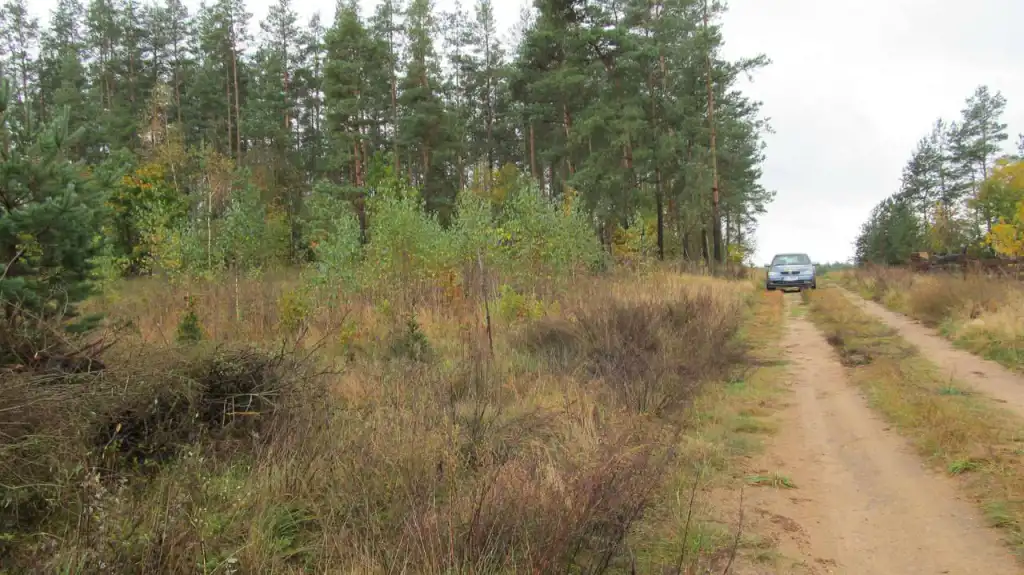 Dojazd drogą żwirową, sąsiedztwo lasu.