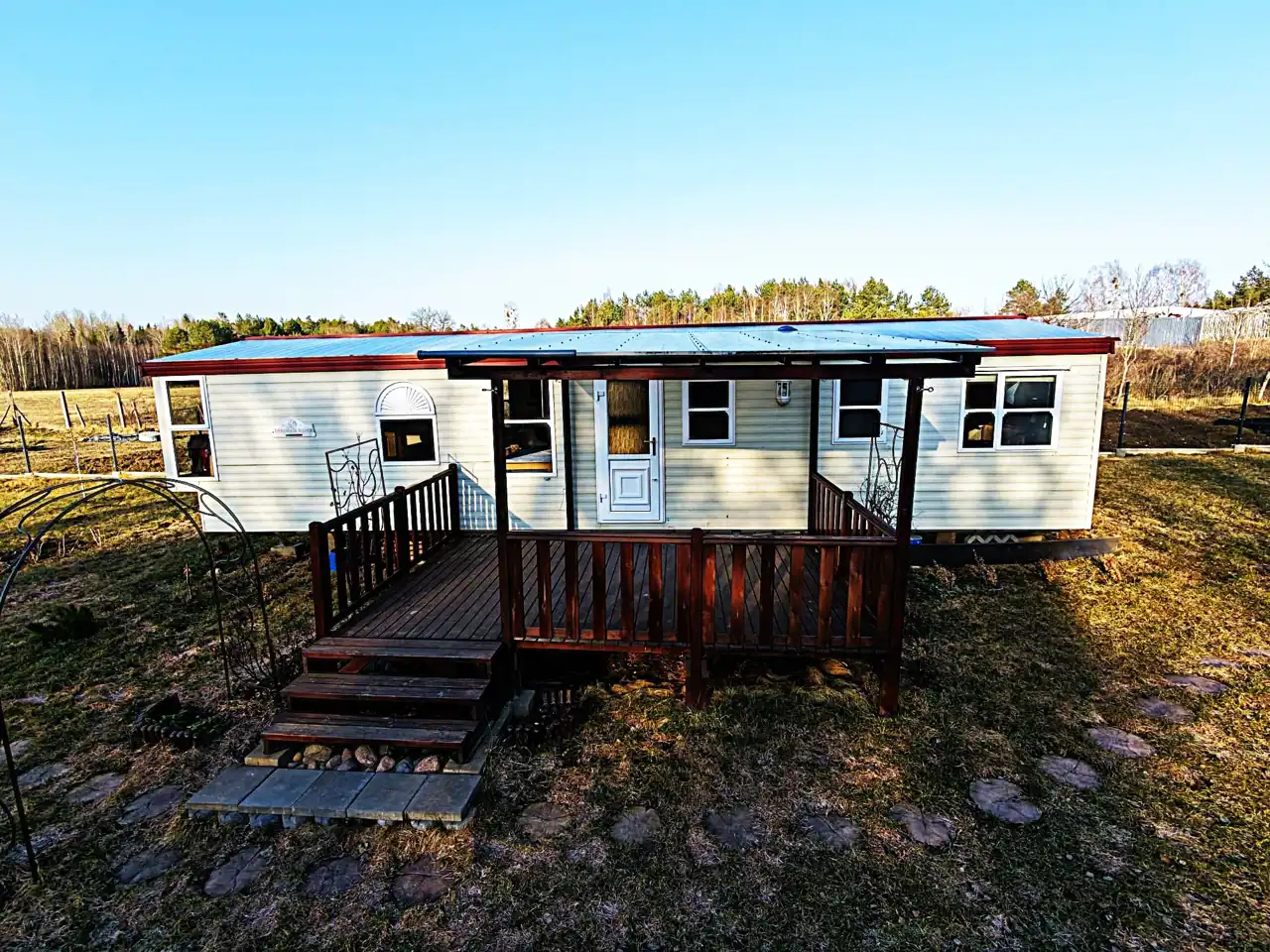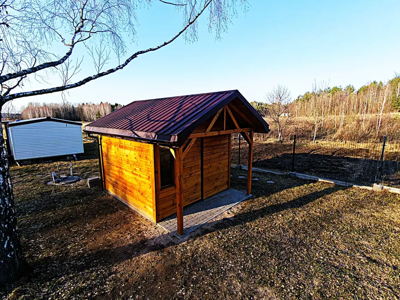 - w cenie działki komfortowy całoroczny mobilny domek holenderski o pow. 42 m2 , z zadaszonym tarasem