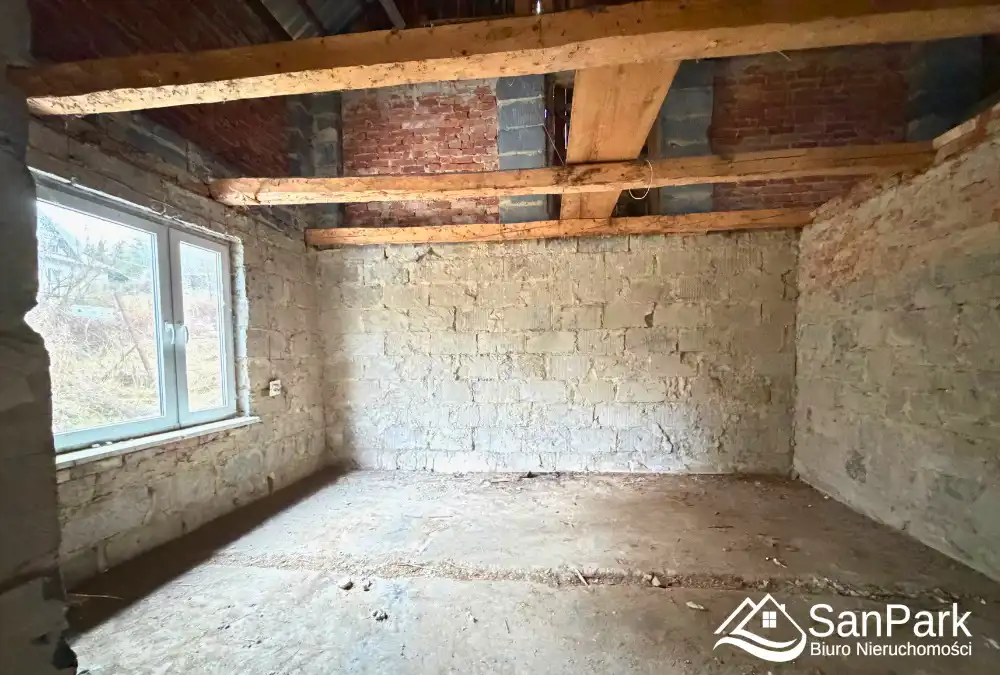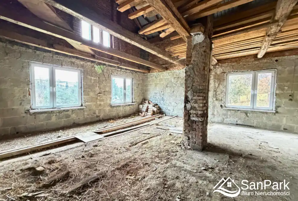 Dom przeznaczony jest do generalnego remontu. Wewnątrz znajduje się stan surowy, a okna zostały wymienione na nowe, plastikowe. Układ nieruchomości pozwala na swobodną aranżację wnętrz według własnych potrzeb, a także umożliwia adaptację poddasza na cele użytkowe.