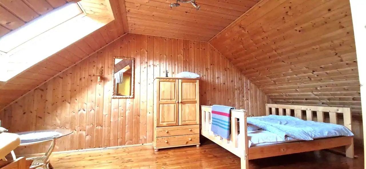1 łóżko pojedyncze, 1 bardzo duże łóżko podwójne,1 łóżko piętrowe