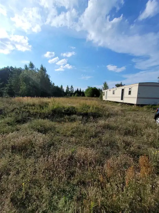 - Media Woda: jest; Kanalizacja: szambo; Prąd: w budynku; Gaz: jest